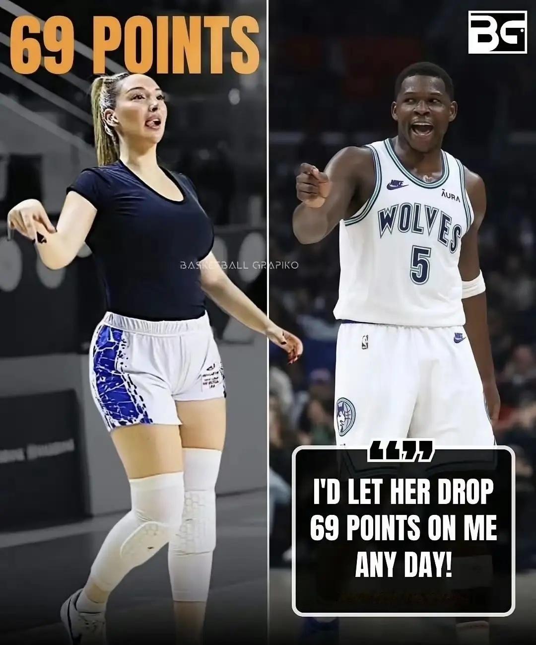 华子这发言太敢了!直言愿天天让女篮猛将在自己头上砍69分森林狼球星安东尼·爱德华兹又因“耿直发言”出圈了!此前土耳其女篮运动员西迈·纳兹·厄格特单场狂砍69分的神迹震惊篮坛,身为NBA状元的爱德华兹得知后直接高调表态:“我愿意天天让她在我头上拿下69分!” 这般带点调侃的示好,瞬间引发球迷热议。不过这波操作也惹出小插曲,有消息称其前女友还因此公开指责他追人举动“过头”。不少网友调侃:华子这审美和哈登有的一拼,打球直率,追人也够大胆!也有球迷喊话:还是多专注赛场,带领森林狼在西部冲一波好成绩才是正事 !