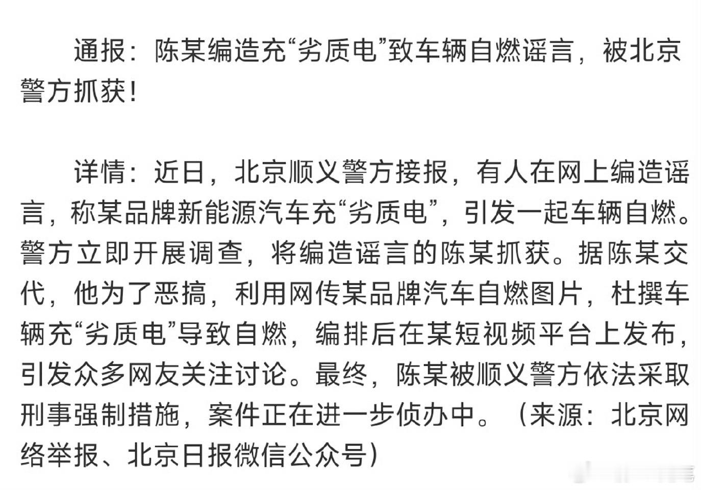 图1:造谣撞死人和嫁接图片被治安处罚。近日,在"汽车行业网络乱象专项整治行动"中,重庆公安机关网安部门接报,有人恶意拼接图片,编造不实信息,损害车企商业信誉。经查,网民梅某为博取眼球、吸引流量,在社交网络平台编造不实图文,宣称"某品牌汽车造成8杀,创单车最高击杀记录",并恶意拼接2025年5月21日外省某地交通事故图片,引发网络舆论聚焦。经与有关部门确认,该文字内容系谣言信息。目前重庆市公安机关网安部门已依法对谣言编造者梅某处以行政处罚。图2:造谣汽车自燃刑事拘留。从性质看,人命关天,造谣出人命了,处罚理论上要更重,可惜图1力度太低了。我的看法是应该学图2,都刑事拘留。造谣抹黑,一定要打击。