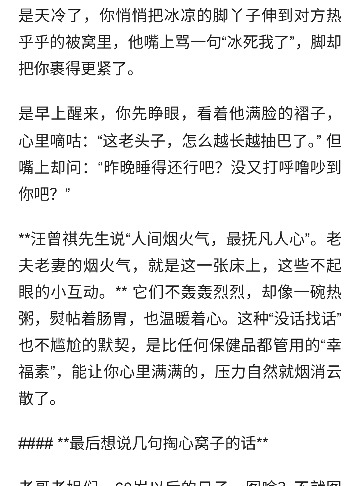我就是这样,老夫老妻相处久了感觉确实不错,年轻夫妻可绝对不会有这种平和的状态。