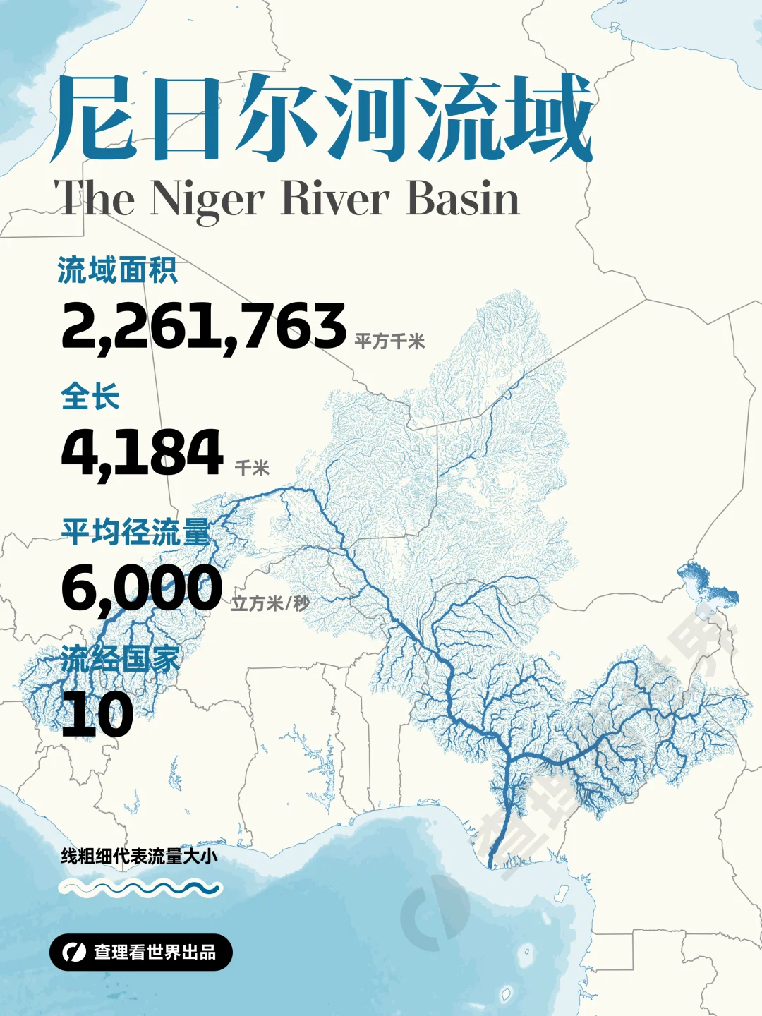 [一R][零R]尼日尔河(约 226 万 km²):西非主要河流,流经多国,流域内农业、渔业发达,是西非文明的摇篮,支撑沿岸居民生活与经济。