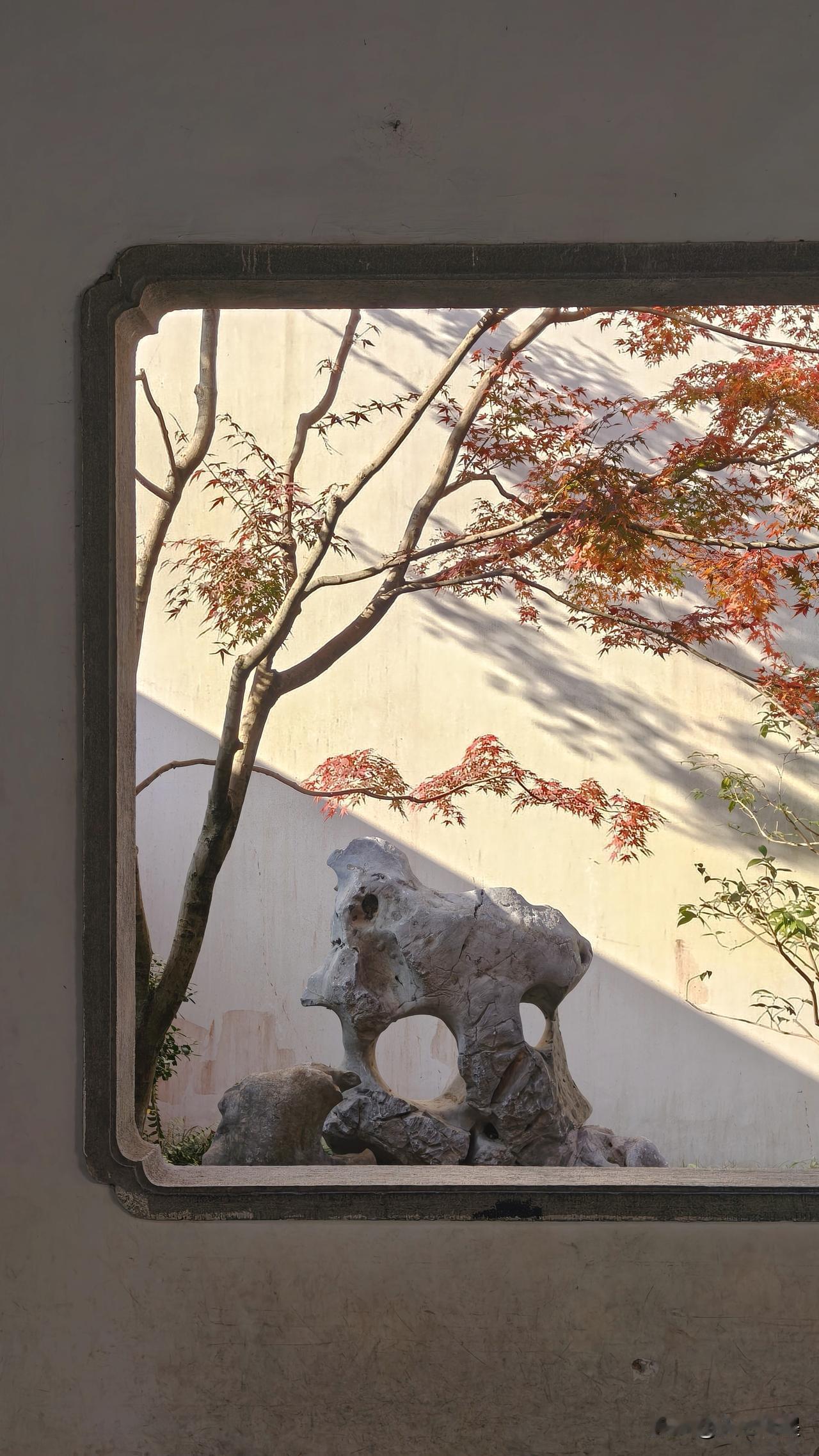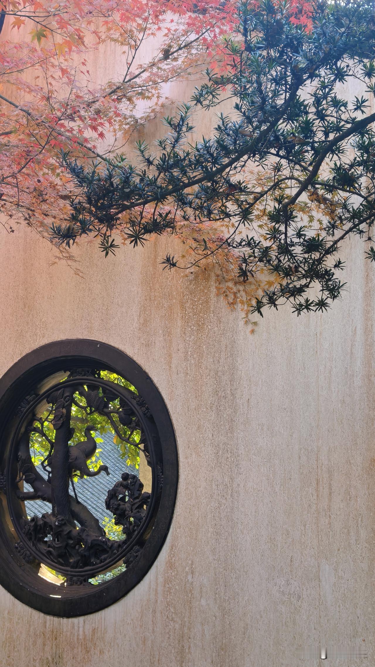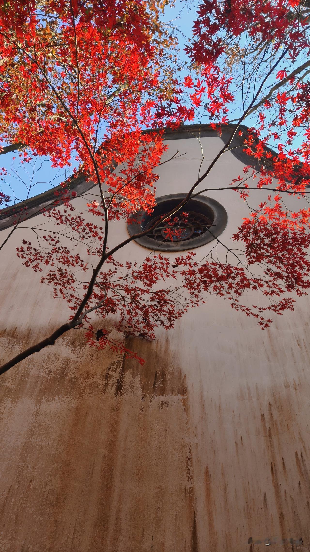 郭庄去晚了,园内的几棵大枫树已经凋零,好在门口的两株娇艳正当时。