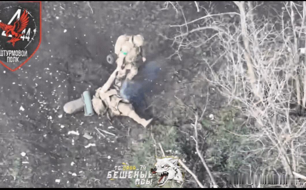 俄军狠起来一点都不仁慈!俄无人机发现了两名乌军正在转移!随后一架俄军fpv无人机立刻赶到,朝着两名乌军中间俯冲攻击!两人瞬间被炸倒。 本以为乌军凶多吉少了,万万没想到,一名乌军还是福大命大,近距离无人机被炸中都没事!还站了起来,但他队友就没那么幸运了!伤势非常严重。 这名幸存的乌军还想试图拖走他战友,看到队友奄奄一息后就放弃了,选择丢下队友自己逃跑了!攻击乌军的无人机来自俄军第74旅。 从另一个细节可以看出,这个乌军据点被俄军攻击的非常频繁!乌军走路时脚下有很多密密麻麻的光纤线缠在脚下。一条光纤线就是一架无人机,一条线就代表有一名到两名乌军被炸倒或者死亡!战争是多么恐怖。