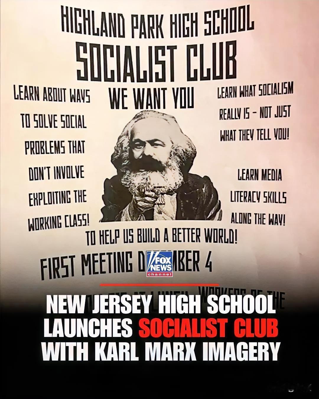美国高中现“社会主义”萌芽? 福克斯新闻发文称其获得了一份宣传单,该传单印有“马克思”头像,并且模仿了一战时期标志性的“山姆大叔”征兵海报。宣传单当中还有各种社会主义口号,例如:“全世界无产者,联合起来!” 报道称,这是美国新泽西州一所富裕郊区高中,为了宣传“青年社会主义者社团”而制作的宣传单。据说,这还是一个以高收入犹太裔和专业人士社区闻名的郊区,学校以学术优秀著称,学生主要来自中上层家庭。 美国年轻人这是开始向往社会主义了?请加油,“星星之火,可以燎原”![看]