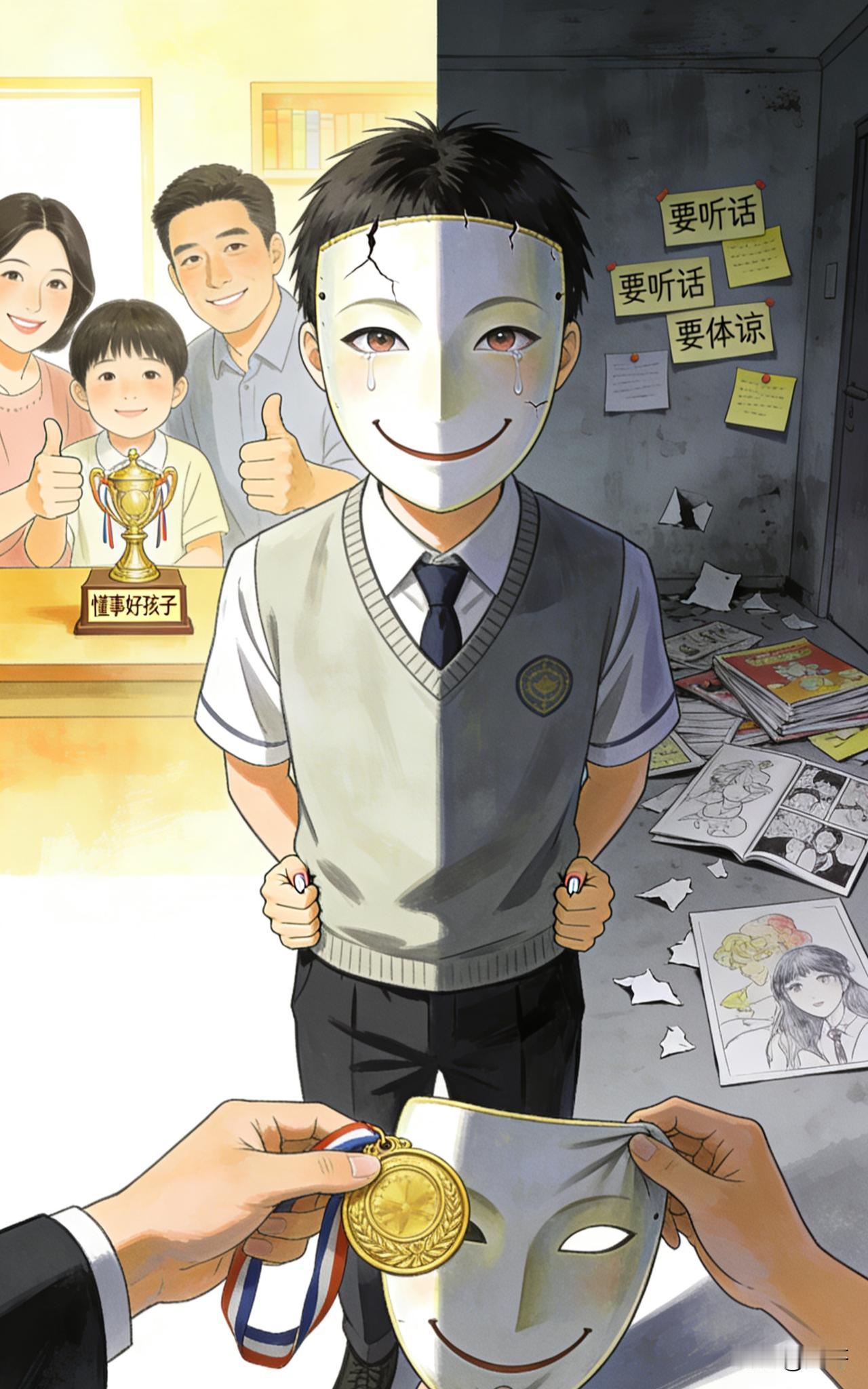 当了三十年“乖女儿”,我第一次对母亲说“不”,母亲夹菜的手悬在半空! 上周末的家庭聚餐,成了压垮我的最后一根稻草。 母亲照例在饭桌上提起:你王阿姨的儿子,下周从国外回来,条件特别好,你这周六必须空出来,去见一见。 全家人的目光投向我,如同过去三十年的每一次。 我嘴里那块糖醋排骨突然味同嚼蜡。 在长达十秒的、令人窒息的沉默后,我放下筷子,抬起头,清晰而平静地说:妈,我不去!我的人生,不是一连串您认为‘必须完成’的任务清单。 餐桌上的空气凝固了。 母亲夹菜的手悬在半空,父亲和弟弟错愕地看着我,仿佛我突然讲了一句外星语言。 母亲回过神,脸上写满了被冒犯的震惊:你…你这是什么话?我还不都是为了你好! 那一刻,我脑海中闪过无数个“必须”的片段: 七岁,必须学钢琴,因为“女孩要有气质”,即使我手指酸痛哭着哀求;十八岁,必须报会计专业,因为“稳定好嫁人”,埋葬了我所有的文学梦;二十五岁,必须分手,因为对方“家境不够好”,那是我最后一次痛快地哭。 我一直是“别人家的孩子”,成绩优异,举止得体,从不叛逆。 我把这种服从,包装成孝顺和懂事。 但只有我自己知道,那个真实的“我”,被深深埋藏在哪里。 我活得就像一个按照精密程序运行的机器人,而程序的唯一编码员,就是母亲“为你好”的意志。 心理学上把这叫做 “过度责任”——孩子为了维系家庭的爱与认可,过度承担了满足父母期待的责任,从而扼杀了真实的自我。 为了我好?我重复着这句话,积压三十年的情绪第一次冲破了那道名为懂事的堤坝。 妈,您有没有问过一次,我开不开心?我喜不喜欢?我小时候最怕练琴,您说我‘不知好歹’;我初恋时眼睛里有光,您说我‘幼稚可笑’。您要的,从来不是一个女儿,而是一个完美完成您人生答卷的‘作品’! 母亲脸色煞白,试图用惯常的权威打断我:你怎么能这么跟我说话! 但我停不下来了:您知道我最深刻的记忆是什么吗?是八岁那年,我考了99分,兴高采烈跑回家。 您只看了一眼,就问:那一分丢在哪了?为什么没考满分? 从那天起,我就知道,我永远不够好,我的价值,只存在于满足您的标准里。 这些话像子弹一样射出,我也浑身颤抖。 我看到了母亲眼中的震惊、慌乱,甚至是一丝……受伤。 令人意外的是,这次剧烈的冲突后,母亲没有像往常一样冷战或责骂。 接连几天,她沉默寡言。上周四晚上,她轻轻推开我房门,没有进来,只是站在门口,声音有些沙哑:你八岁那次……我后来,其实偷偷跟你爸夸过你,说咱闺女真厉害,我只是……只是怕你骄傲。 那一刻,我看到了她铠甲下的柔软。 我走过去,第一次像成年人对待成年人一样,对她说:妈,我今年三十五岁了,已经不会因为一句表扬就骄傲到天上去了,我更需要的,是您能看见我,而不是您想塑造的我。我们能试着,重新认识一下对方吗? 真正的成长,或许不是与过去彻底决裂,而是有能力在废墟上,与重要的人建立一种新的更真实的关系连接。 真正的孝顺,不是顺从其意,而是活出自己的生命力后,依然愿意温柔地看向来处,并尝试教会父母如何去爱一个“真实”的你。 这条路很难,但跨越“懂事”的牢笼,是我为自己人生负责的真正开始。 “懂事”,到底是一种美德,还是一种压抑?你在成长过程中,是否也曾为了满足父母的期待而隐藏真实的自己?你认为与父母建立更健康的关系,关键的一步是什么?友友,我们评论区聊一聊。 迷哥创作分享[比心] 写给我女儿的信 80后叛逆妈妈 60后叛逆父母 我的30后妈妈 我14岁的女儿 对妈妈的惭愧 女儿经历 女儿初体验 创作训练营开营啦 创作训练营2期开营啦 女儿不碰 母亲的拒绝 我的倔强妈妈 不讲道理的母亲 母亲后悔了 不后悔的妈妈 我倔强的妈妈