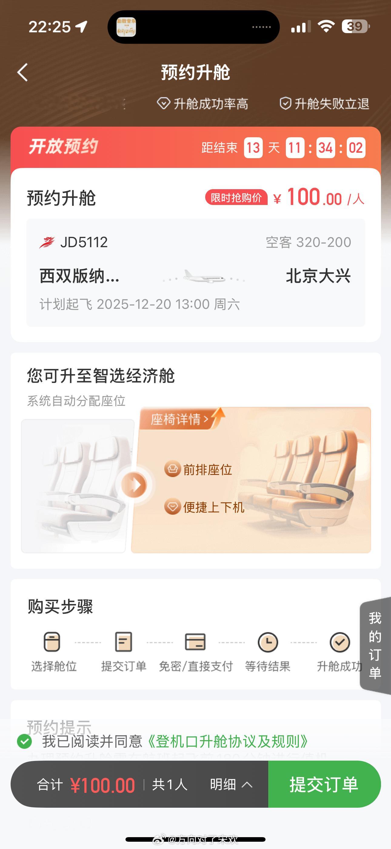 首都航空这吃相真难看,同样经济舱,前排一定要加钱才行,我都已经经济舱了,还会多花这100元吗?首都航空