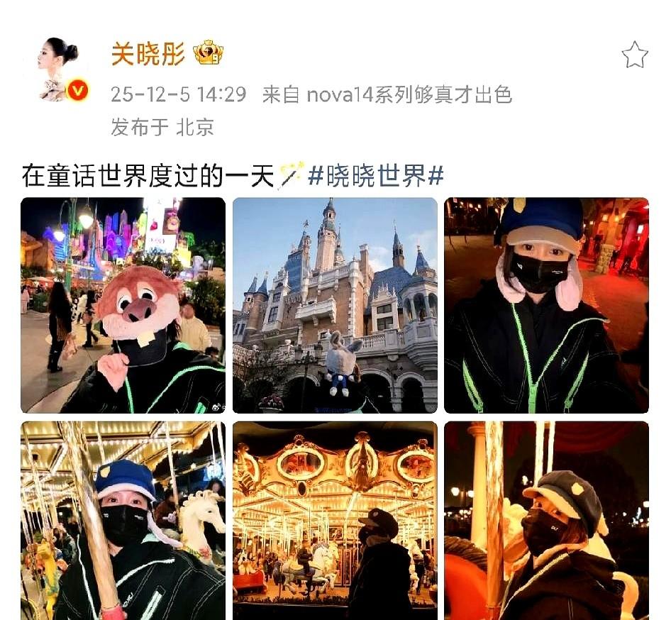 关晓彤一条微博,同款发饰搜索量暴涨。 最近,关晓彤分享了一组童话世界的照片,配文简单,就说在梦幻乐园度过了一天。照片里她身着粉色蓬蓬裙,手持魔法棒,背景是梦幻城堡和旋转木马。 这组图一经发布便迅速走红。粉丝们热情回应,评论区热闹非凡,还自发创建了相关话题,热度持续攀升。这个“在逃公主”的创意梗,真是每次都能引发热议。 表面上看是她新剧《二十不惑2》杀青后的休假照,其实背后颇有讲究。有迹象显示,造型师和摄影师的专业水准,让人猜测这更像是精心策划的商业拍摄。这样的流量互动,玩得颇为巧妙。 这事儿的影响力也超出了社交平台本身。短视频平台上涌现出许多模仿她的拍照姿势,时尚博主纷纷剖析她的造型,旅游账号也借势推出冬季梦幻游玩攻略。 一条微博撬动的商业价值,远比照片本身精彩。
