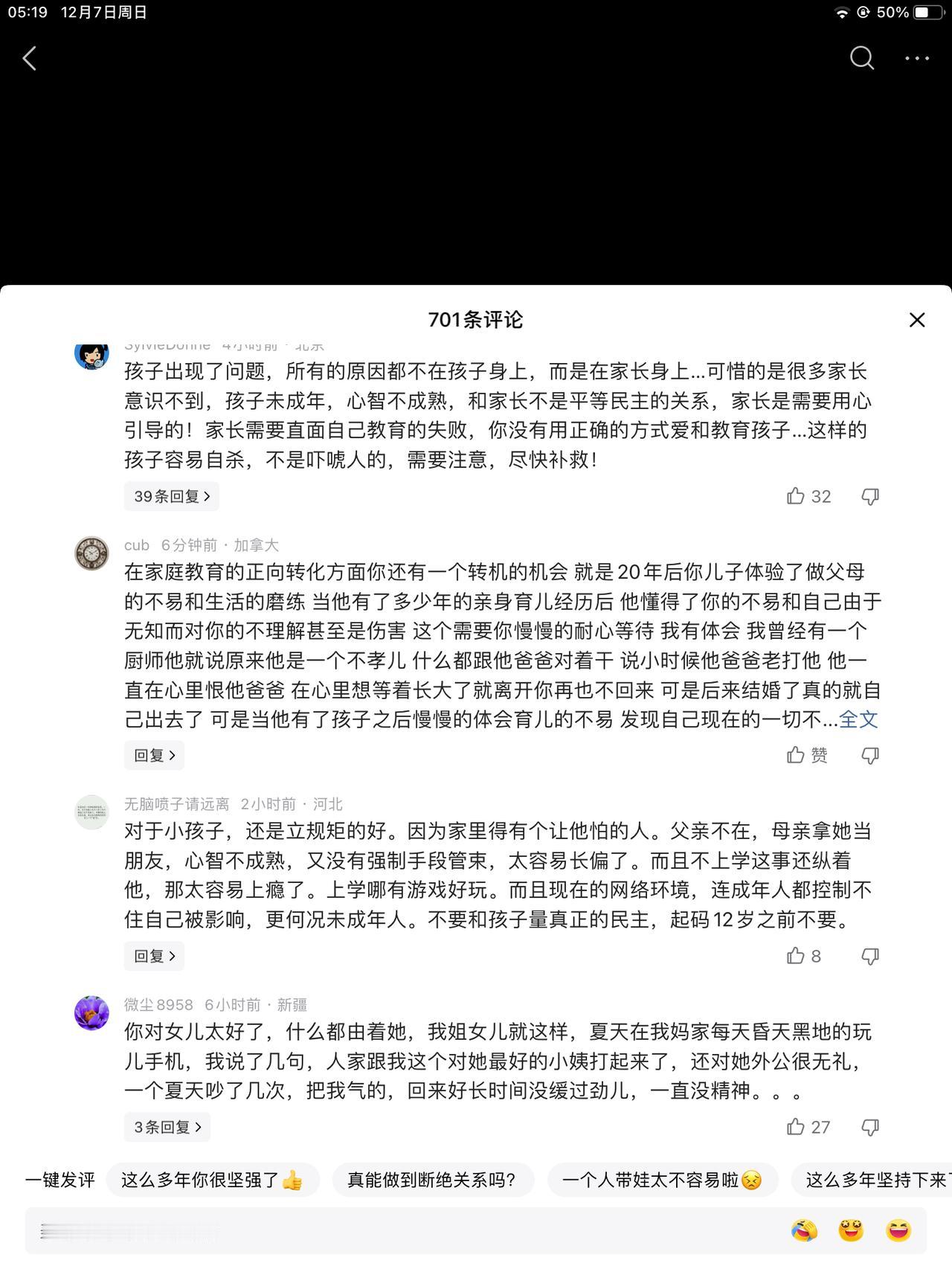 这也是一个普世价值观里失败的妈妈。视频迪拜拍的,说明条件可以。离异,也就是说,没有爸爸的陪伴。光这一点,就老多缺憾了。 其实,家里有个叔叔,好过没有,多注意,别让孩子受伤害就行。不怕一万,就怕万一。不在家的时候,可以让她回奶奶家。没有完全值得信任的人,糟心爸爸,糟心爷爷,都出现过,只是个概率问题。 为了孩子没有再找。你亏欠自己的样子真的很狼狈。你不去爱自己。,孩子也学着不爱自己。潜移默化的,伤害了彼此。刀子都是自己递的,互相之间,扎起来很方便的。 游戏的确容易上瘾。这个这个,很难。总有一个或者几个瘾容易极端化。比如吃。比如性。比如游戏。吃出一身病,我不还在吃吗?本质上都一样。 只要不断她粮,她有可能一直这样。除非天塌下来,。不信你问问富贵儿。输光了,也能自己种地刨食吃。当然,还得忍几年,还没成年。