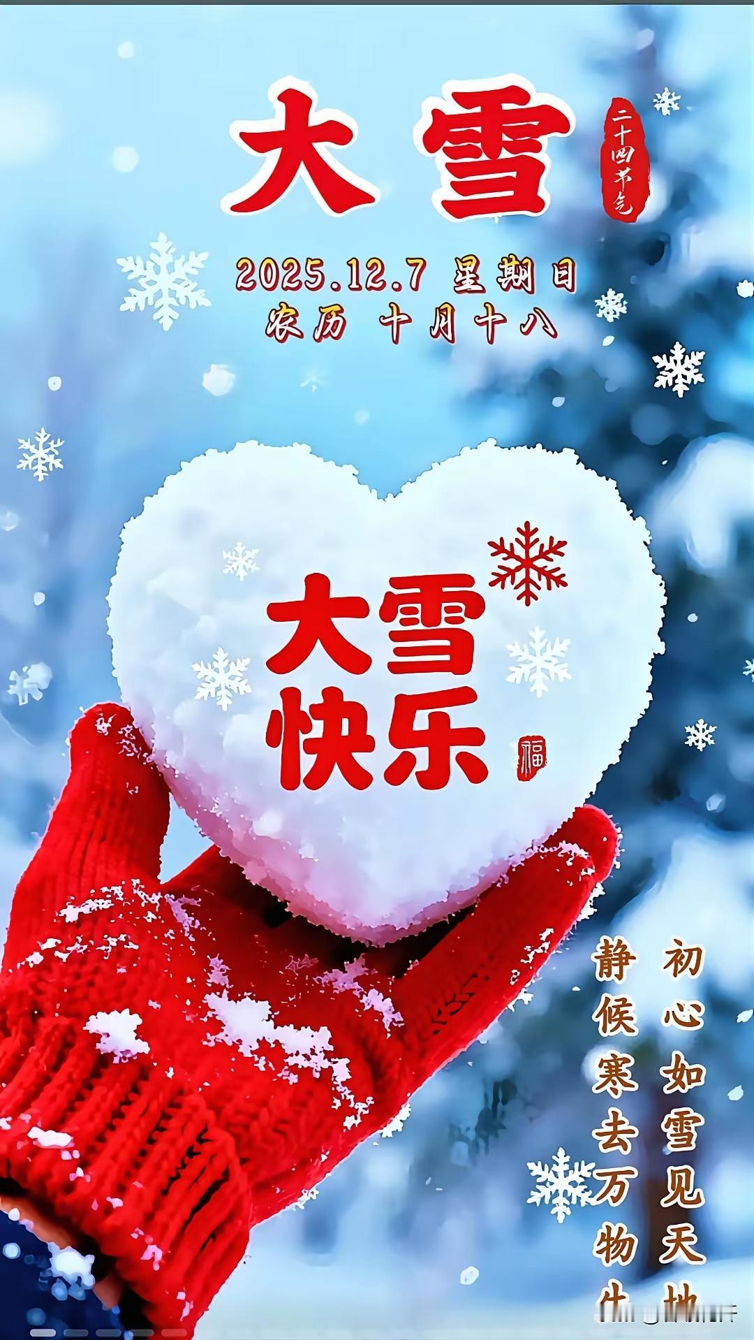 大雪至天气渐寒,胸有凌云身体暖,静候春色花满圆,愿您的生活如诗如画,一切期待皆圆满!🌹🍎♥️早上好[福]😊🌹