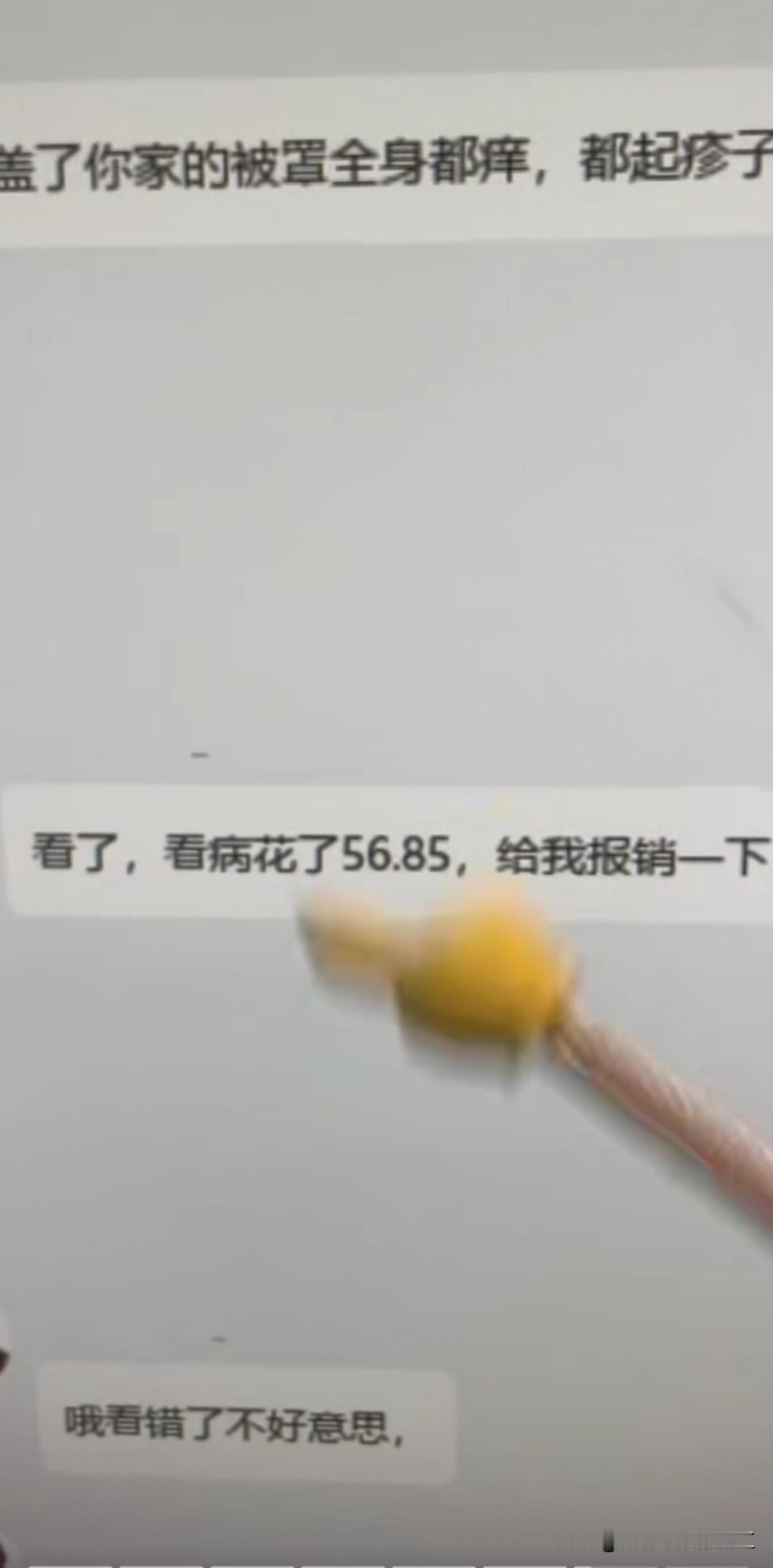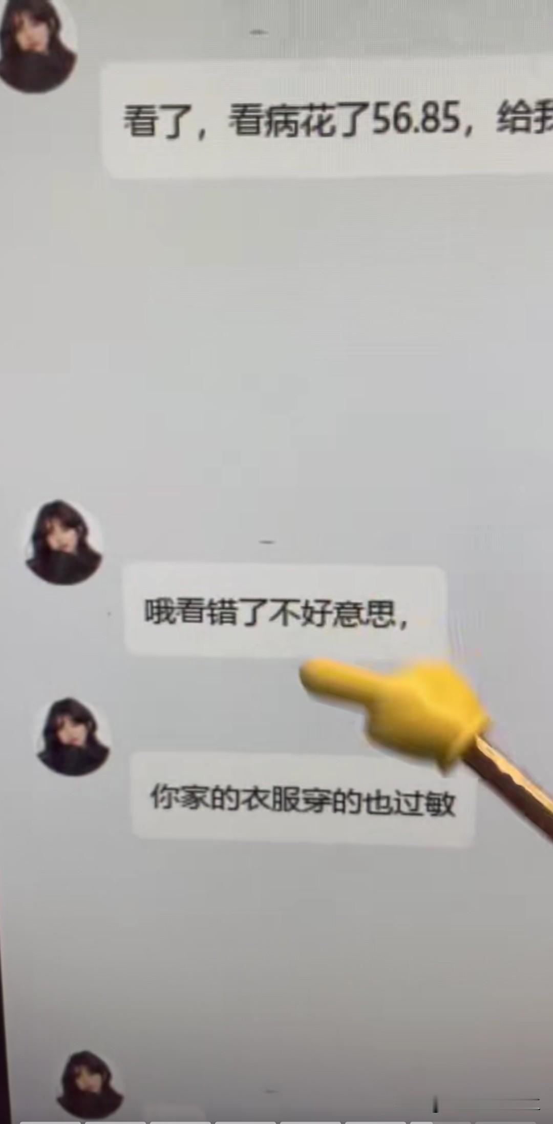 网友,盖了你家的被罩过敏了 客服,那你要去医院看下 网友,看了56.85,你给报销下 客服,可是我家是卖男装的 网友,我看错了是穿了你家的衣服, 客服,非要在我家报销吗,可是你都没有买过, 网友,那我现在下单!