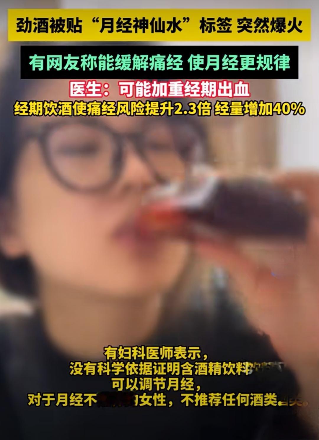 劲酒成“痛经神仙水”?别让养生变伤身 近日,社交平台上刮起一阵“劲酒养生风”——部分主播宣称这款传统保健酒能缓解痛经、改善手脚冰凉,被网友戏称为“月经神仙水”。相关话题迅速登上热搜,引发广泛讨论。 “养生酒”走红背后的隐忧 在“朋克养生”盛行的当下,部分年轻人热衷于寻找“一站式解决方案”。劲酒因其较低的酒精度数和“草本配方”概念,被贴上“温和调理”的标签。然而医生明确提醒:月经不规律者不宜饮用任何酒类,酒精可能影响激素水平,加重不适症状。 理性看待“网红养生法” 值得关注的是,任何酒类都不应被神化为“治疗神器”。传统保健酒虽有特定配方,但其本质仍含酒精。网络宣传往往放大个别体验,忽视个体差异和潜在风险。 健康提醒: 1. 痛经原因复杂,应先咨询专业医师明确类型 2. 酒精可能影响药物代谢,服用期间需谨慎 3. 冬季手脚冰凉需排查循环问题,单纯饮酒治标不治本 养生需要科学态度,而非盲目跟风。在追求健康的路上,理性选择比追捧“网红偏方”更重要——毕竟,真正呵护身体的方式,从来不是简单的“一杯解千愁”。 你如何看待这类“网红养生法”? 欢迎在评论区分享你的健康理念。