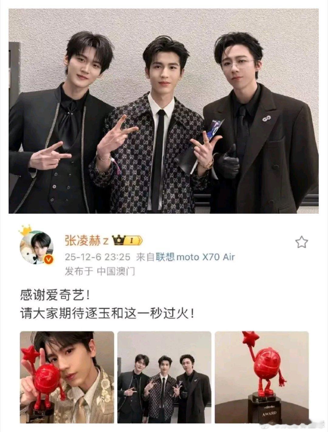 张凌赫晒与刘宇宁周柯宇合照刚刷到,就被这同框画面晃了眼——张凌赫站中间,左边刘宇宁肩线挺拔自带气场,右边周柯宇少年感藏不住,三个人往镜头前一站,愣是把合照拍成了“颜值画报”,开推男团这养眼程度,说是“超标”都算保守。没有刻意摆拍的僵硬,是那种熟络到能随便搭肩的松弛感:张凌赫嘴角带笑,刘宇宁眼神带点漫不经心的帅,周柯宇歪头的弧度透着灵动,每一帧都像在说“我们熟得很”。这种自然流露的合拍,比任何精致修图都让人“疯狂心动”。大概这就是男团同框的魅力吧——不是单一的帅,是不同风格的气场撞在一起,反而更让人挪不开眼。开推男团这波合照,算是把“养眼”两个字焊在热搜上了。