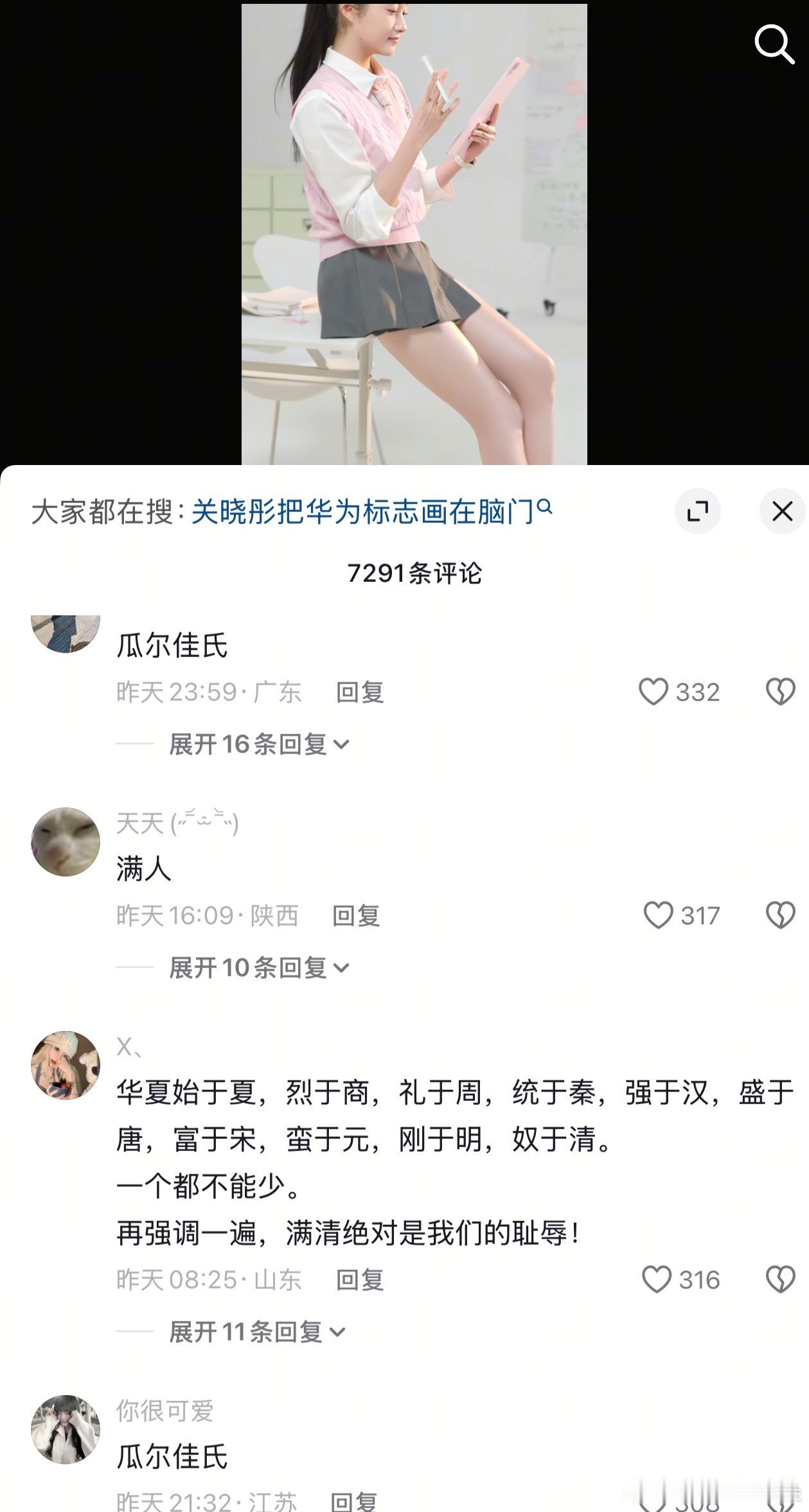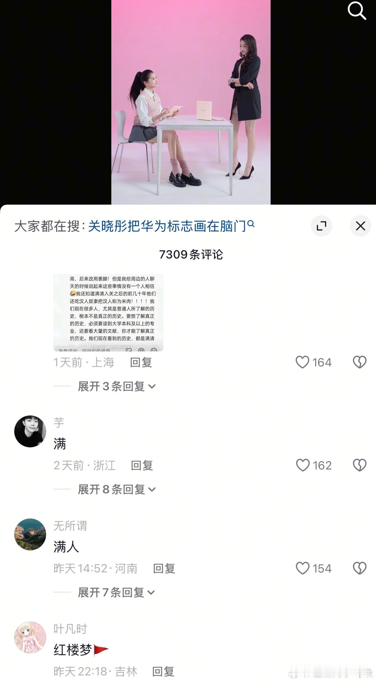 最近红楼梦的一个解读“隐寓明亡血史”,火起来之后,清朝又在被喊打喊杀了,抖人都冲去关晓彤的评论下刷屏了