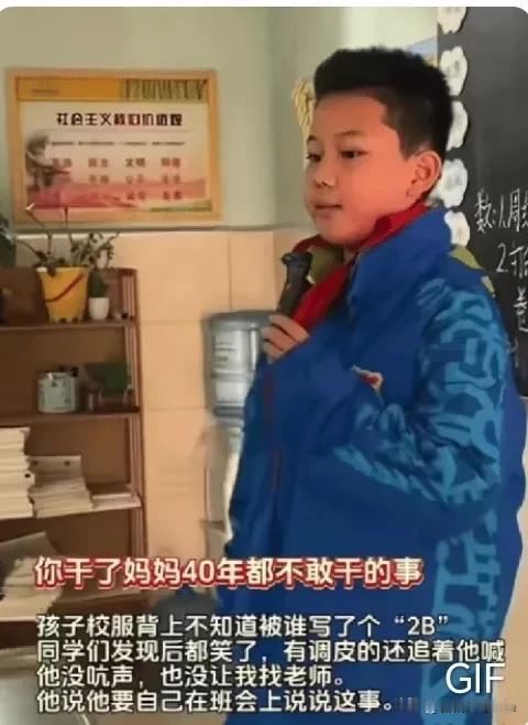 “太勇敢了!”西安,9岁男孩校服背后被人写了“2B”,妈妈得知孩子被同学嘲笑了两天,气得想找班主任讨说法,没想到男孩竟淡定地说他自己能解决。 在周五班会课,男孩走到讲台前对全班同学说了他这两天的感受,还说即便只是玩笑也会伤害他人,换位思考没人愿意被这样对待,言语有态度又有分量。 妈妈那股火刚窜到嗓子眼,听见孩子这话,愣了好一会儿。她盯着孩子的脸,没看到委屈哭闹,只看到眼底那点认真,到嘴边的“我去找他们”硬生生咽了回去。 这两天她不是没察觉异常——孩子放学回家总把校服反过来挂在衣架上,吃饭时偶尔会盯着碗发呆,问他怎么了只说“没事”。 她本想着等周末好好问问,没成想是被人这么欺负了。可孩子都这么说了,她咬咬牙,只摸了摸他的头:“行,你想怎么解决就怎么来,要是受委屈了,随时跟妈说。” 男孩没多说什么,只是点点头。接下来的几天,他还是像往常一样背书包上学,只是每天睡前会对着镜子小声念叨几句,妈妈路过门口,隐约听见“我就是想让他们知道”“不是所有玩笑都好笑”之类的话,没进去打扰,只轻轻带上了门。 周五的班会课,班主任刚说“有同学想分享点事”,男孩就抱着课本走到了讲台前。班里起初还有几声细碎的笑,有人偷偷往他背后瞥,可他站定后,抬眼看向全班,声音不算大,却刚好能让每个角落都听清:“这两天,我校服背后有字,你们都看见了。” 那点笑声瞬间没了。 “刚开始我没在意,直到有人追着我喊,我才知道那是骂人的话。”他攥了攥校服的衣角,没看任何人的眼睛,“这两天我走在走廊里,总感觉后背发烫,有人拍我肩膀,我第一反应是害怕——怕又是来笑我的。” 底下有几个同学动了动身子,眼神开始闪躲。 “我知道可能是有人觉得好玩,随便写的。但好玩是你们的事,难受是我的事。”他抬眼,语气没了刚才的低落,多了点认真,“要是有人在你们背后写不好的话,追着你们笑,你们会不会像我一样,连走路都想缩着脖子?” 教室彻底静了,能听见窗外风吹树叶的声音。坐在后排的一个男生,手指抠着桌角,耳朵慢慢红了——是他前几天趁男孩午睡,随手在人校服上写了字。 男孩没点任何人的名字,只接着说:“我不是来告状的,就是想告诉大家,说话做事前,多想想别人会不会难受。玩笑要是只让一个人不痛快,那就不是玩笑了。” 说完这话,他对着班主任鞠了个躬,走回了自己的座位。班里安静了好几秒,突然有个女生小声说了句“对不起”,接着,那个写了字的男生也站起来,低着头说:“是我写的,我不该那么做。” 男孩抬头看了他一眼,轻轻摇了摇头:“没事,以后别这么做就行。” 下课后,好几个同学围到他座位旁,有人递给他一块橡皮,说“要是还有字我帮你擦”,有人拍了拍他的肩膀:“以后有人笑你,我帮你说他们。”男孩抱着那小块橡皮,嘴角慢慢勾了起来——这是他这两天第一次笑。 很多时候,孩子之间的矛盾,大人插手反而容易变味:批评会让犯错的孩子生出抵触,说教也难真正钻进同伴的心里。 可这个9岁的男孩,没用哭闹换同情,没用告状换偏袒,只凭着一句句真实的感受,把“被伤害”的情绪摊开在所有人面前——不是指责,是共情。他没站在“受害者”的立场去抱怨,只站在“同样是孩子”的角度,让大家看见自己的难受,也看见行为的重量。 这从来不是“胆子大”那么简单。能压住委屈不冲动,能理清情绪去表达,能放下对立去沟通,这些藏在平静语气里的能力,是比“找人撑腰”更珍贵的底气。它让矛盾没变成积怨,让嘲笑变成了歉疚,更让一群孩子在那节班会课里,真真切切学会了“把别人的感受当回事”。 孩子的世界里,最有效的成长从不是大人的灌输,而是同伴之间的“感同身受”。就像这个男孩做的那样,不用复杂的道理,只用一句“你会不会像我一样难受”,就把“尊重”两个字,种进了每个人心里。 各位读者你们怎么看?欢迎在评论区讨论。