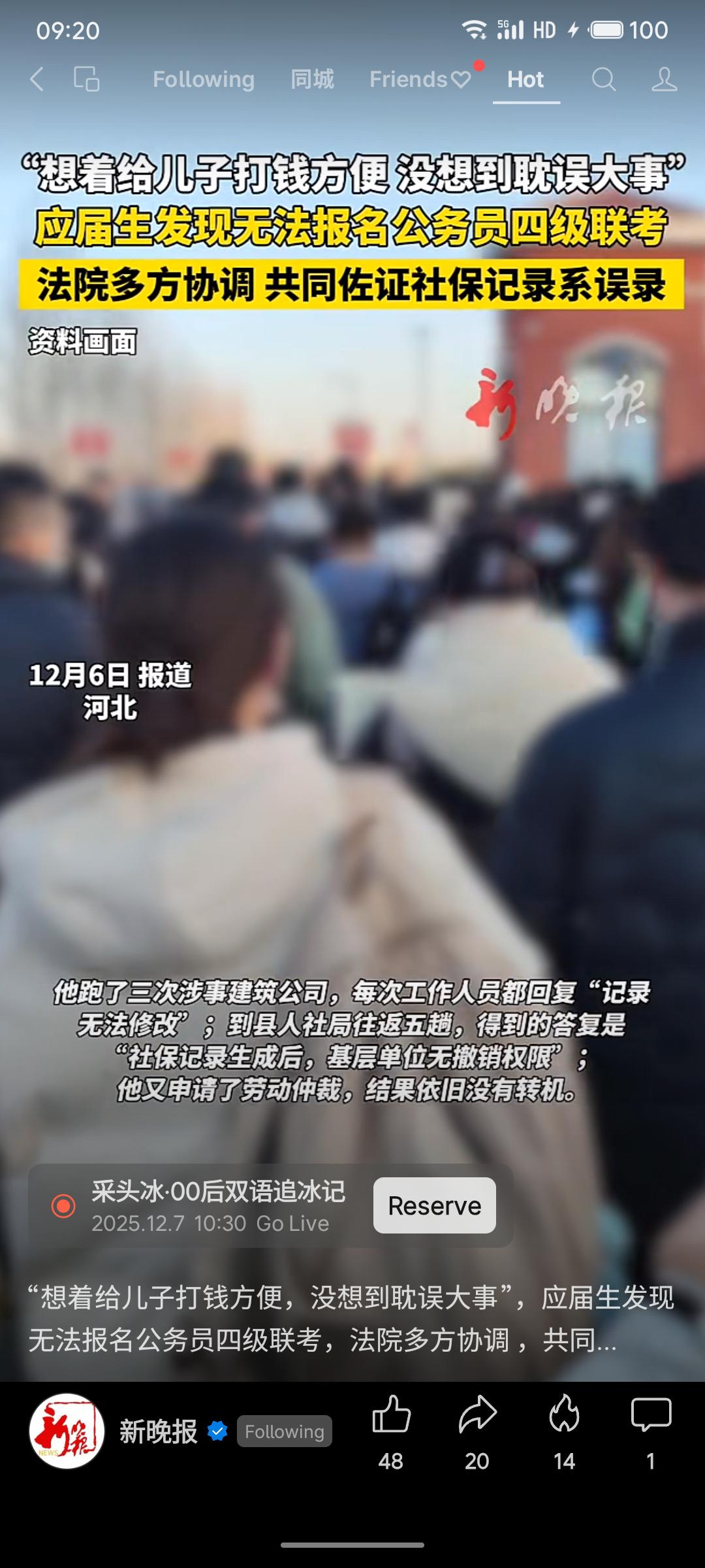 河北应届生李东备考公务员时,因社保系统误录其父所在建筑公司为其缴纳一个月养老保险,导致报名资格受阻。其父仅为便于接收工资而将账户提供给儿子使用。李东多方求助无果,最终由法院介入调查,协调公司与人社局出具书面证明,确认为误录。问题解决后,李东得以顺利参加考试并被录用。
