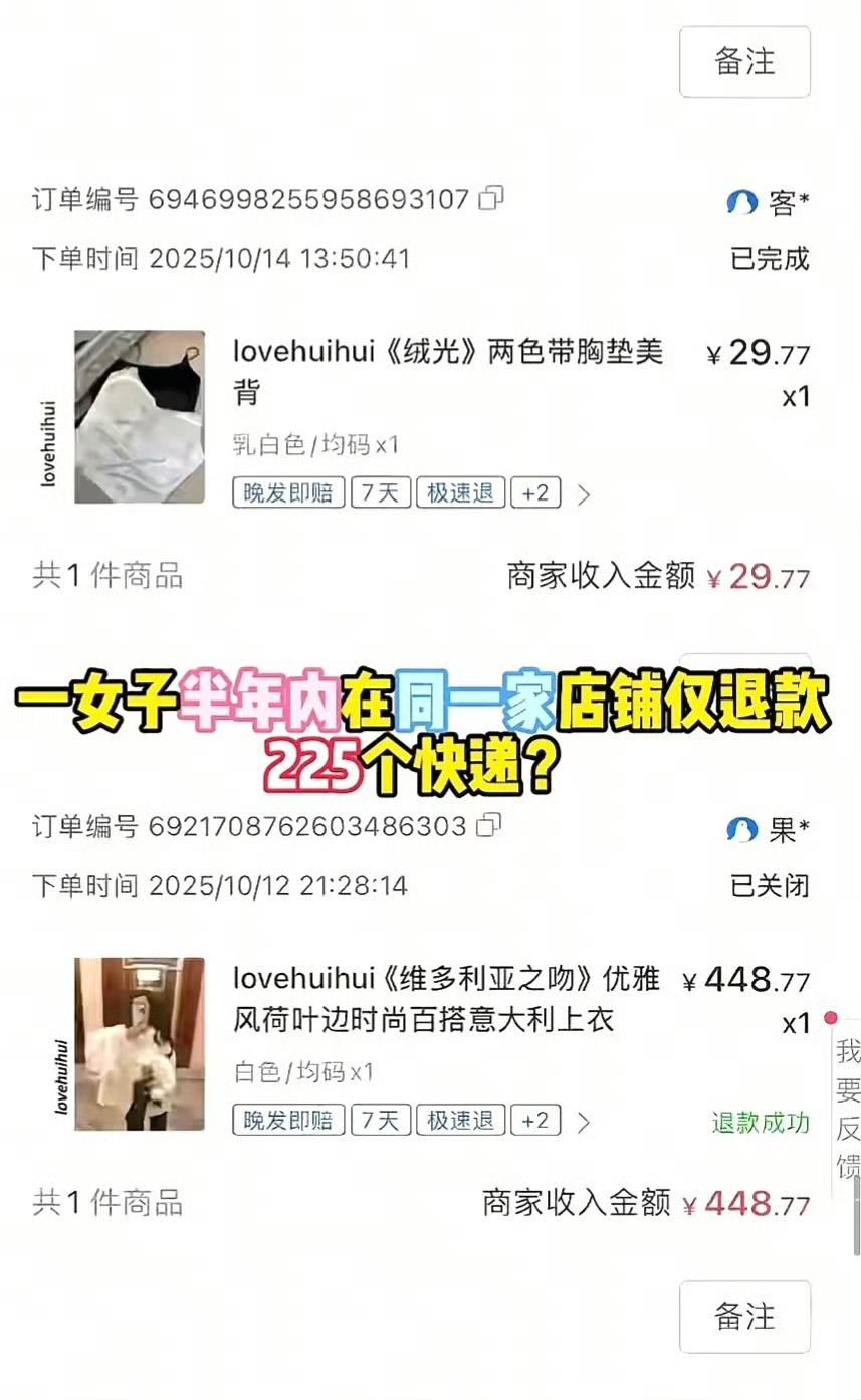 刷新三观!女子仅退款225个快递装富婆,败露后求放过?律师:诈骗没跑! 现在的人为了装富真的毫无底线!广州商家时女士半年亏了5.4万,查了才知道被烟台一女子刘某拿捏得死死的,用6个账号疯狂操作“仅退款”,足足搞了225个快递331单,这操作简直把电商漏洞玩出花了!😂 更绝的是这女的套路太深,先拦截贵价快递申请仅退款,再把低价商品换上面单退回蒙混过关,转头就把骗来的东西卖了,还在网上打造光鲜富婆人设,属实是“空手套白狼”的天花板了。结果东窗事发,立马变脸求商家“留条路”,早干嘛去了? 最解气的是律师直接定性,这已经构成诈骗,可不是简单的薅羊毛那么简单!而且曝光后还有好多商家私信时女士,居然都是同一个人坑的,这是把商家当提款机了?🙄 做生意本来就不容易,凭啥要为这种人的贪心买单?支持商家维权到底,也希望平台赶紧补漏洞,别再让老实人吃亏! 你们觉得这女的该严惩吗?遇到过恶意退款的坑吗?来评论区吐槽聊聊,让更多人避坑!🔥 仅退款225个快递女子打造富婆人设 律师称仅退款225个快递构成诈骗 电商套路防不胜防 支持商家合法维权