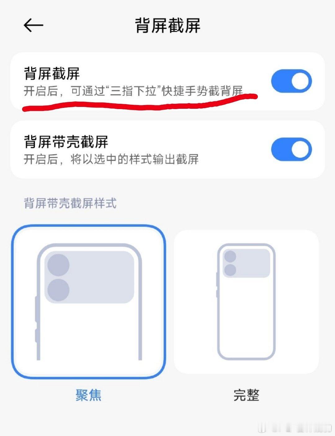 小米澎湃OS3背屏支持三指下拉更新还支持聚焦背屏和带壳截屏,便于分享如果能再支持背屏录屏,那就不需要两个手机才能分享背屏精彩内容了只不过我手大,三个手指操作背屏下拉有点费劲女生福音