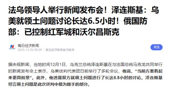 泽连斯基宣布 12月2日,乌克兰总统泽连斯基亲口宣布:乌美代表团就“领土问题”一口气谈了6.5小时,创下单场谈判最长纪录。 这场马拉松式谈判背后,是美方28点和平计划的拉扯,核心直指乌方是否要对领土做出让步。美国国务卿早就在此前会谈中明说,领土让步是和平协议的必经之路。 最初的28点计划要求乌克兰承认顿巴斯、克里米亚归属俄罗斯,军队规模砍至60万,永久排除北约可能,这几乎是照着俄罗斯的停战条件写的剧本。 但泽连斯基团队在日内瓦会谈后强硬反弹,将方案"瘦身"为19点:乌军规模放宽至80万,领土问题从"承认现状"变为"沿接触线谈判",北约条款干脆留白。 这种修改看似是乌方的胜利,实则是美国两派妥协的产物——特朗普急于在中期选举前拿到"和平政绩",而建制派军工复合体不愿放弃持续军援的蛋糕,于是把最敏感的领土争议甩给泽连斯基本人,既保留了"促和"的政治正确,又避免直接触碰国内援乌派的逆鳞。 乌克兰的谈判桌背后是炮火轰鸣的现实,当乌美代表在佛罗里达争论第聂伯河左岸归属时,俄军正在库尔斯克推进战线,11月占领的乌东土地比前一个月翻了一番。 这种"边打边谈"的节奏,让泽连斯基的每一次让步都显得像在枪口下签字。更致命的是,美国始终拒绝提供实质性安全保障——鲁比奥直言乌克兰不能指望美国在再次被攻击时出兵,这意味着任何领土妥协都可能成为永久伤疤。 欧洲的介入让博弈更加复杂,英法德在28点计划曝光后迅速抛出反提案,强调"领土交换必须基于乌克兰主权",甚至将乌军规模上限抬到80万。 这种表态看似支持乌克兰,实则是担心美国单独与俄交易,让欧洲承担重建成本却失去话语权。 数据显示被冻结的3000亿俄资产中,80%存于欧洲银行,美国原计划抽取50%利润用于乌重建,相当于让欧洲出钱、美国获利。如今19点计划删除资产条款,表面是照顾乌方尊严,实则是美欧在经济利益上的拉扯——欧洲宁可让谈判僵着,也不愿替美国的地缘战略埋单。 俄罗斯的沉默构成最沉重的压力,普京在谈判期间视察库尔斯克前线,明确"彻底夺回"的目标,俄军则用导弹袭击基辅作为"谈判背景音"。这种军事威慑配合外交沉默的策略,让美国不得不反复向俄方"报备"谈判进展。 佩斯科夫那句"我们在等美方详细通报",道破了俄方的底牌:只要乌克兰不承认现实控制线,任何谈判都是废纸。而特朗普团队急于促成协议的心态,恰恰给了俄方拖延的筹码。 泽连斯基本人的处境正在变成地缘政治的悲剧。他必须在国内主战派和西方金主之间走钢丝。 12月1日与马克龙的联合记者会上,他反复强调"领土是乌克兰人的鲜血换来的",却又不得不承认"当前方案更具前景"。这种分裂的表态,折射出乌军士兵在前线每天伤亡300-500人、后方却要讨论割让15%国土的荒诞现实。 更残酷的是,美国正在将谈判失败的责任预扣在乌克兰头上——鲁比奥公开说"乌方必须做困难的决定",言下之意:如果谈崩,是基辅不愿牺牲,而非华盛顿的方案不公。 这场6.5小时的谈判,本质是大国用乌克兰的领土做筹码的时间游戏。当美国计算着中期选举的倒计时,欧洲盯着重建资金的分配表,俄罗斯数着占领区的战壕,只有乌克兰在为每一寸土地的未来争吵。 现在的问题已不是泽连斯基能否守住红线,而是当所有玩家都准备离场时,乌克兰还能在牌桌上坚持多久。
