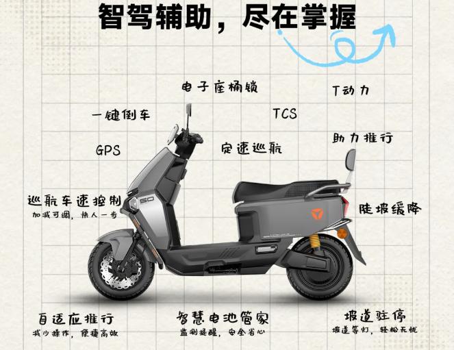 雅迪最近推出了新款电动摩托车——冠能龙霆-M,这次升级主打一个“高能智能”,可以说是高端智能电摩里的实力派选手! 先看外观,这款车车身设计得方方正正,线条却特别流畅,一点都不呆板。它配了智能光感大灯,光线暗了自动点亮,晚上骑车安全感满满。还有类似摩托车的超车灯,加上双闪警示功能,不管是提醒路人还是夜间行车,都更放心。 安全方面,这款车真是下足了功夫。它有五种防护模式,既能自动上锁,也能用蓝牙或远程设防。还支持电子围栏,车子万一倒了,还会自动联系紧急联系人,太贴心了!而且轮胎异常、非法启动、震动、倾倒甚至丢车,都能实时报警,防盗又保险。 它装了一块5寸彩色大屏,不仅看天气、听音乐、全屏导航、接电话很方便,还能引导故障维修、显示充电状态,屏幕亮度也能三档调节,白天夜晚都看得清。 最值得一说的,是它那一堆智能黑科技!一键倒车、定速巡航、TCS防侧滑、陡坡缓降、助力推车、坡道驻停、自适应推行、T动力模式……通通都有!而且还内置智慧电池管家,电池状态随时掌握,用起来省心不少。 性能上,它搭载1200W电机,配上72V23Ah石墨烯电池,续航够顶,特别适合中长途通勤的朋友。出门远一点,也不怕电量焦虑啦!