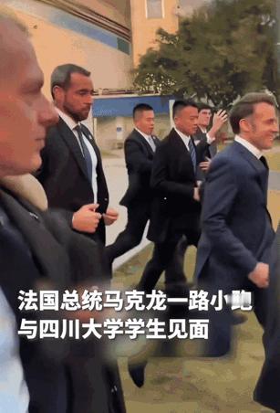 马克龙:我从政这么多年,在法国没实现的愿望,居然在川大给实现了! 太搞笑了,马克龙在12月5日访问四川大学期间,当接待车辆停下的那一刻,马克龙不是直接走向接待区,而是一路小跑带微笑跑向了学生与学生击掌,握手,甚至还出现了“十字相扣”。 说白了,这就是一场双向奔赴的快乐,法国总统在川大解锁了“无拘无束”的青春体验,中国学子用最纯粹的热情,让开放时代的好客之道有了最生动的注脚! 12月5日的川大校园,银杏叶还带着暖黄的光泽,马克龙的接待车辆刚一停稳,现场所有人都没料到接下来的画面,这位平时在法国政坛被各种议程、抗议和弹劾提案围绕的总统,居然直接跳过了既定路线,脸上挂着藏不住的笑容一路小跑,径直冲向了围在一旁的学生们。 没有西装革履的拘谨,甚至特意没戴领带,他伸手就和同学们击掌,掌心相触的瞬间满是真诚,遇到热情的同学还顺势“十字相扣”,那股子兴奋劲,活脱脱像个终于挣脱束缚的大男孩。 其实中国人的热情好客从来都不是装出来的,是刻在骨子里的本能,尤其是在这个开放包容的时代,我们早就习惯了用真诚拥抱朋友,川大学子的反应就是最好的证明,有人举着中法双语的标语欢呼,有人用流利的法语问好,还有人特意准备了小礼物想要递给他,现场的掌声和笑声此起彼伏,完全没有面对外国元首的距离感。 要知道,川大本身就和法国有着深厚的渊源,建校之初就开设了法文科,老校长吴玉章、作家巴金等都曾赴法留学,这么多年来更是和巴黎多所高校保持着紧密合作,这份跨越百年的联结,让这场互动更添了几分亲切感。 反观如果是对华立场强硬的日本首相高市早苗来,场面恐怕就会截然不同了,中国人向来分得清谁是朋友谁是敌人,朋友来了有鲜花掌声,敌人来了自然有猎枪以待,真要是她来,迎接的大概率不是笑脸,而是砸过来的鸡蛋和西红柿,这不是恶意,而是底线分明的态度,我们的热情从来都不是无差别放送,只给那些尊重中国、愿意和我们友好相处的人。 再看看马克龙当天的状态,真让人忍不住想调侃一句,这娃平时怕是被老夫人布丽吉特管束得太严了。 要知道他和布丽吉特的婚姻一直备受关注,这位比他大24岁的妻子不仅是他的初恋,更是他政坛路上的重要支持者,向来有自己的主见和发言权,连外媒都评价她“不会藏在幕后”。 或许是长期处在这样的氛围里,又或许是在法国政坛经历了太多“黄马甲”运动、退休改革罢工这样的纷争,面对川大校园里朝气蓬勃的年轻人,他才会如此放飞自我。 毕竟在这没有弹劾提案,没有街头抗议,只有纯粹的欢呼和真诚的交流,他甚至主动增加了两个提问机会,和学生们聊AI、聊成长,还分享自己的人生感悟,说“别怕浪费时间,静下来才能找到真正的机会”,临走前还遗憾地说“时光太过短暂”,这份松弛感,在法国政坛可是少见得很。 当天他不仅和学生们热络互动,还去四川省体育馆和中法乒乓球运动员同台较量,挥拍的样子同样活力满满。 其实想想也不难理解,对马克龙来说,从政这么多年,在法国推行改革屡屡受阻,想要的轻松氛围和真诚联结总是隔着一层,没想到在中国的大学校园里,居然全都实现了。 这种不加修饰的互动,既是他个人情绪的自然流露,也是中法友好的生动写照,当一个国家的总统愿意放下身段,和另一个国家的年轻人真心交流,这份友谊就有了最坚实的基础。 以上只是个人看法,不知道大家觉得马克龙当天的表现是真情流露还是刻意为之?如果换成其他外国政要,你觉得川大学子还会这么热情吗?欢迎在评论区留下你的观点。
