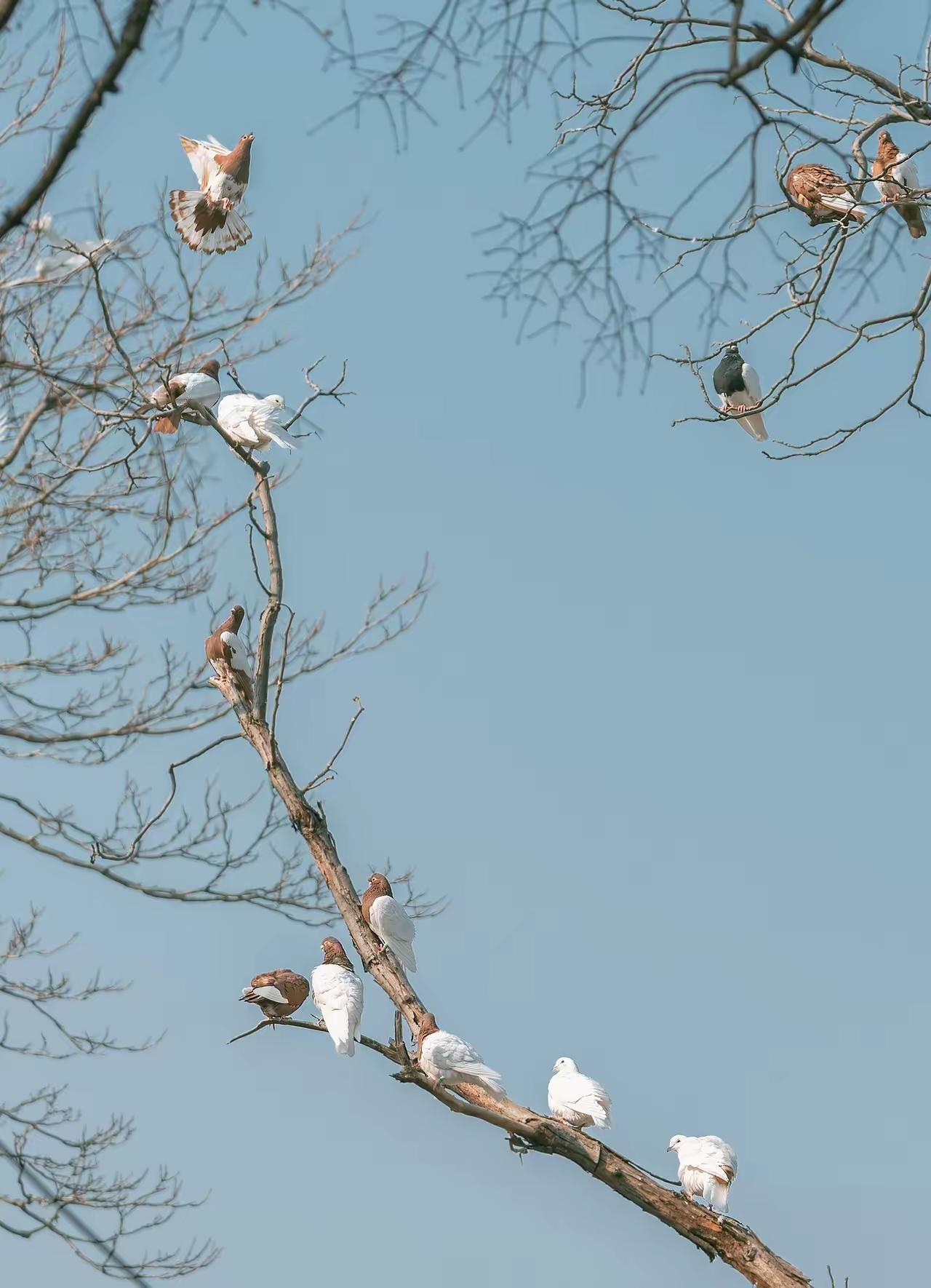 好多鸟子落在枝头