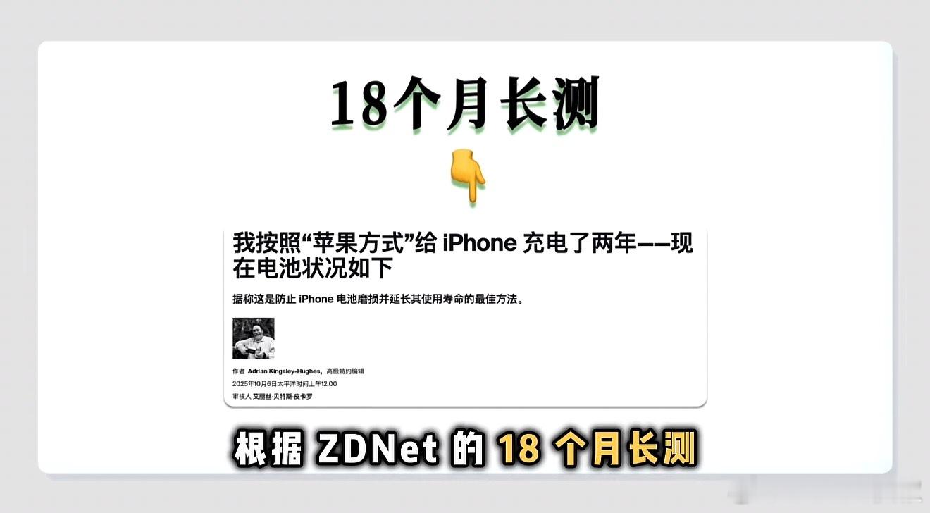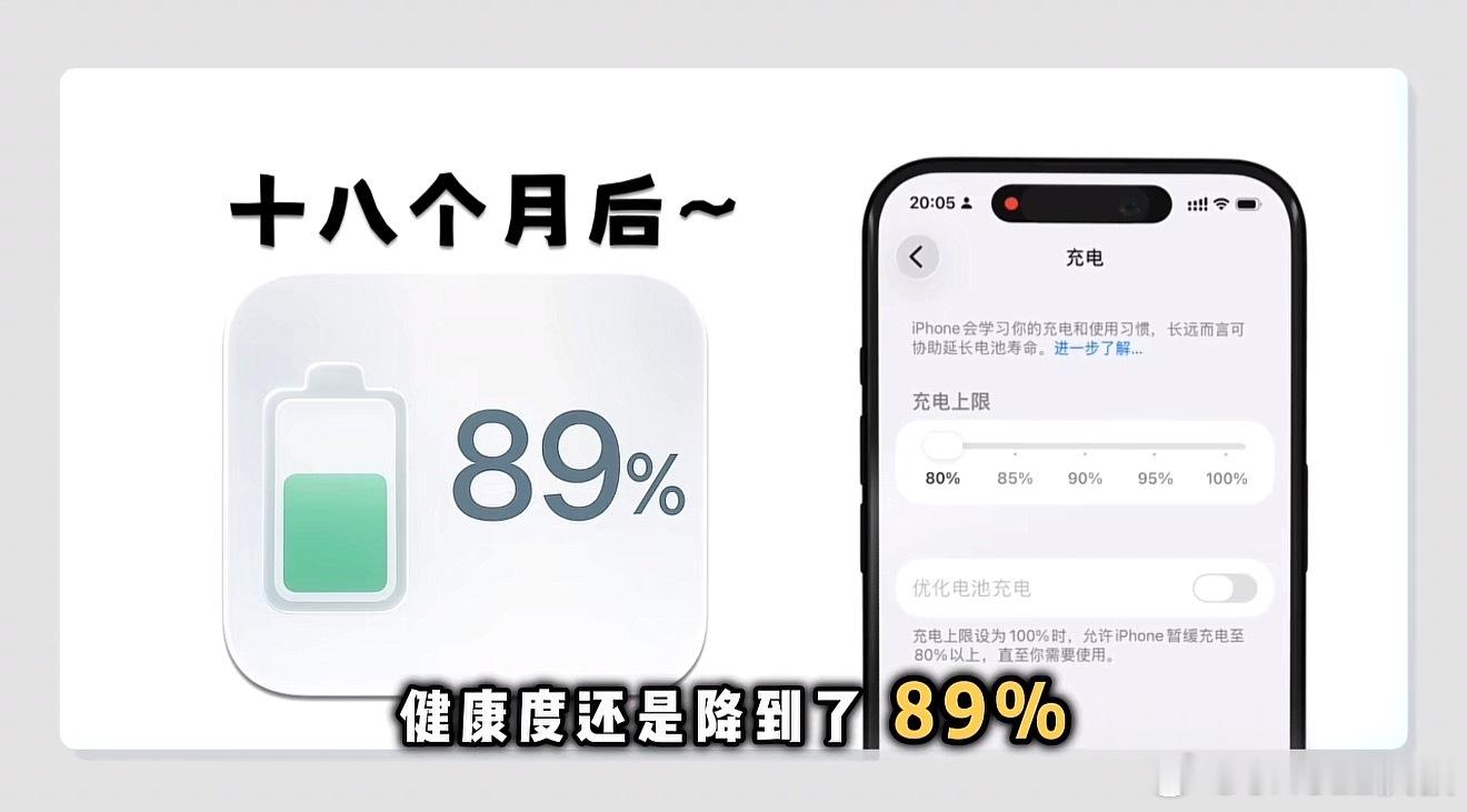 国外评测团队ZDNET做了一个iPhone续航长测,设定时间是18个月,全程使用80%的电池充电上限,最后结论是……在整整循环501次后,iPhone健康度还是掉到了89%.限制充电,全是情绪没有价值,该咋造咋造吧