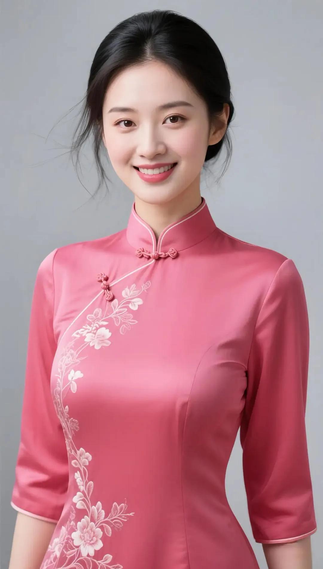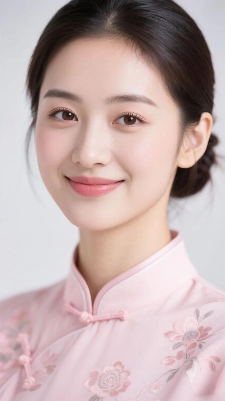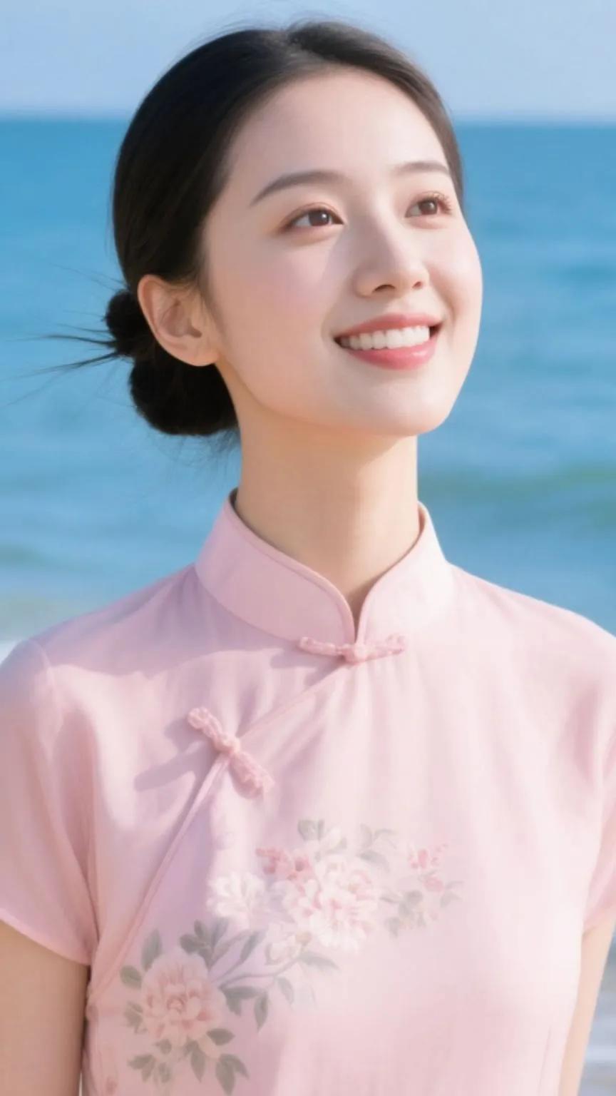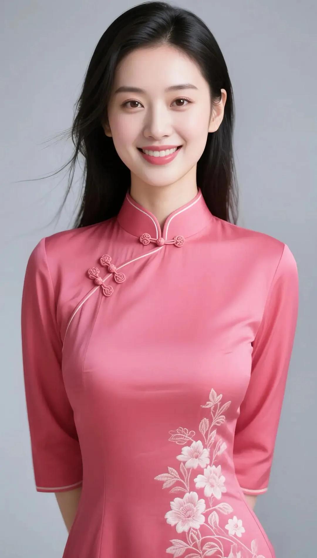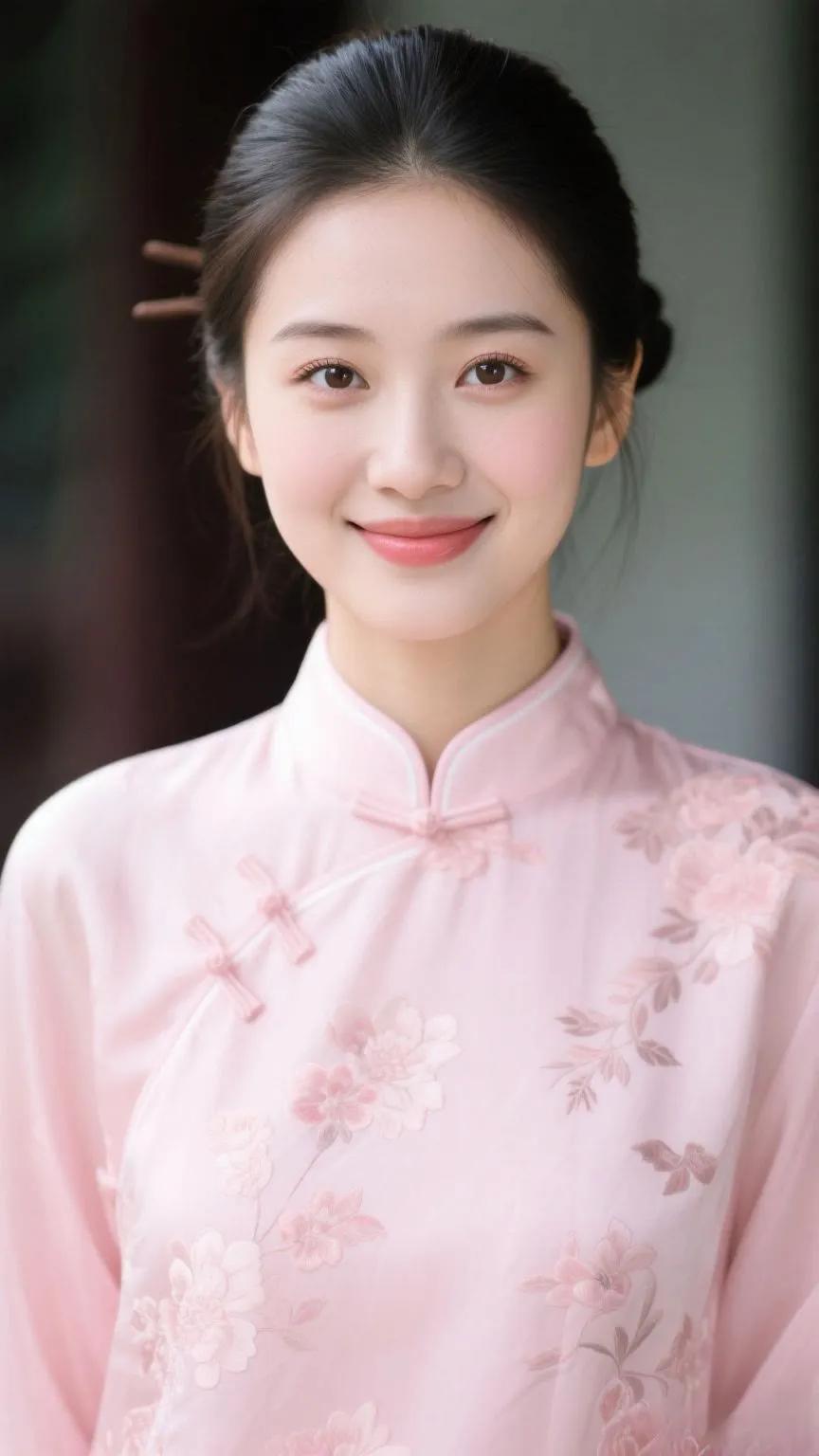 温柔笑颜,粉色旗袍,优雅气质,尽显东方美。