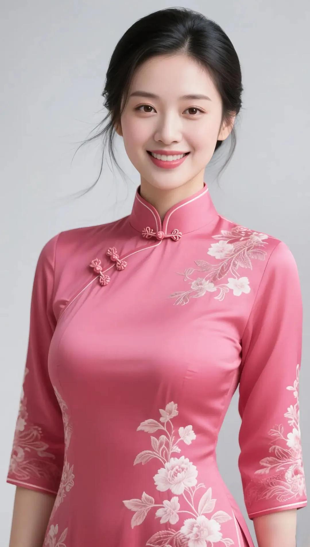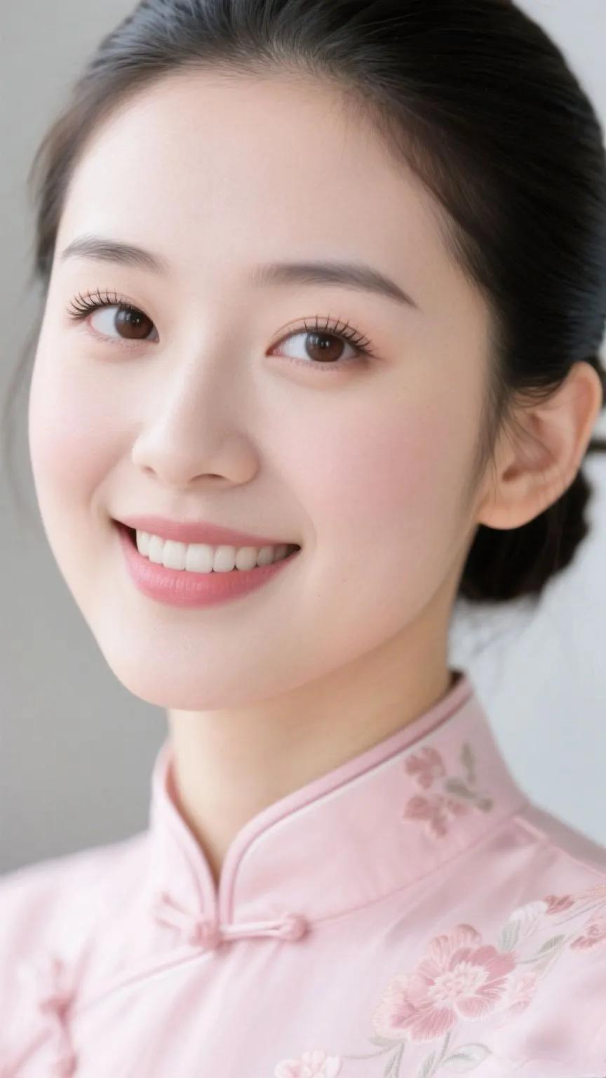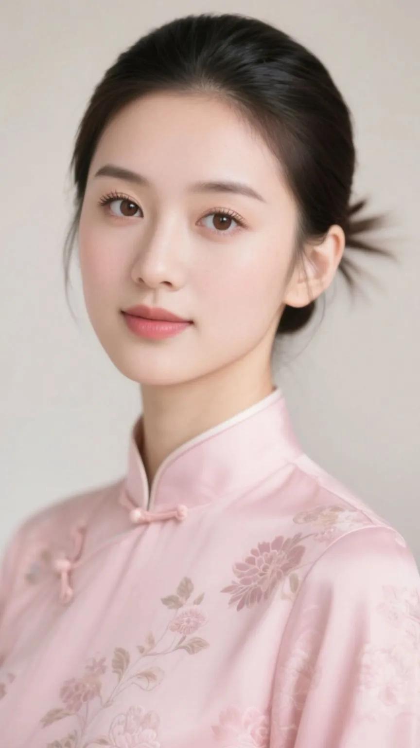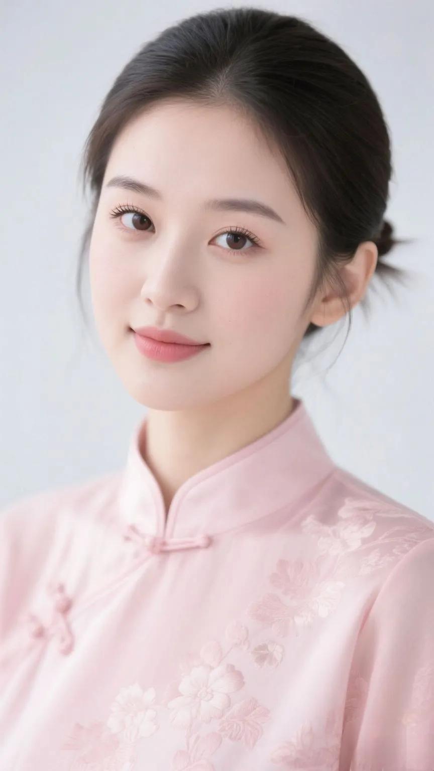 温柔笑颜,粉色旗袍,优雅气质,尽显东方美。
