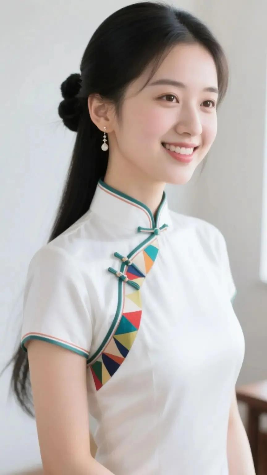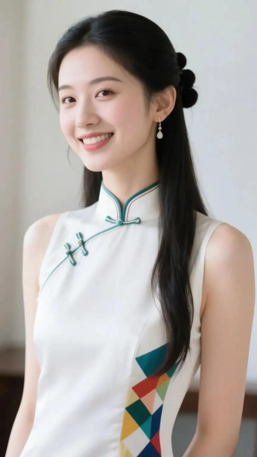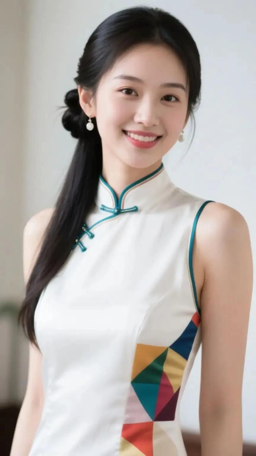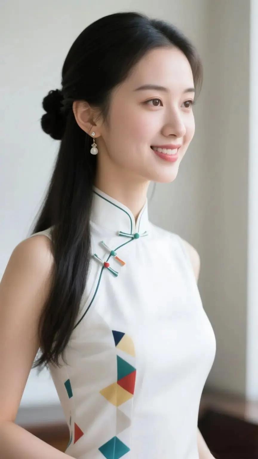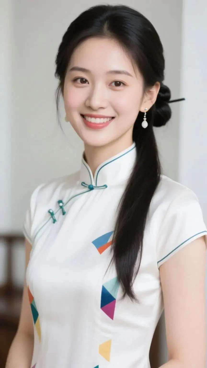 温柔笑颜,粉色旗袍,优雅气质,尽显东方美。