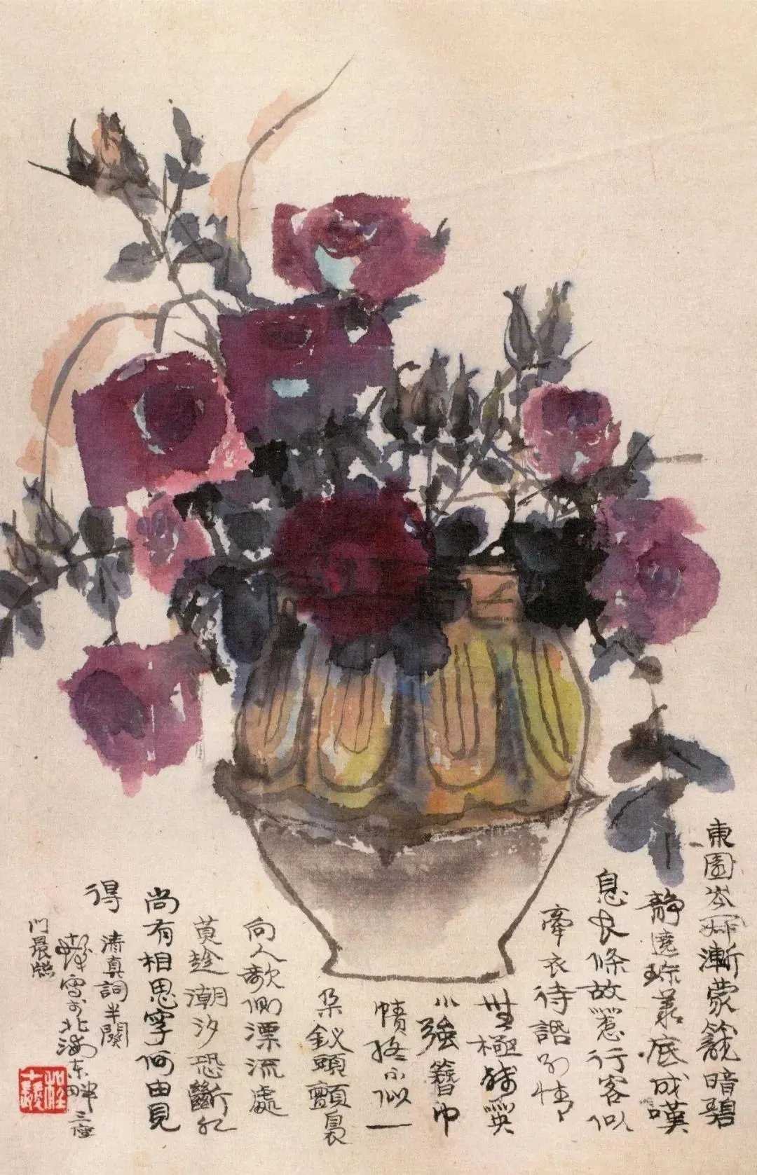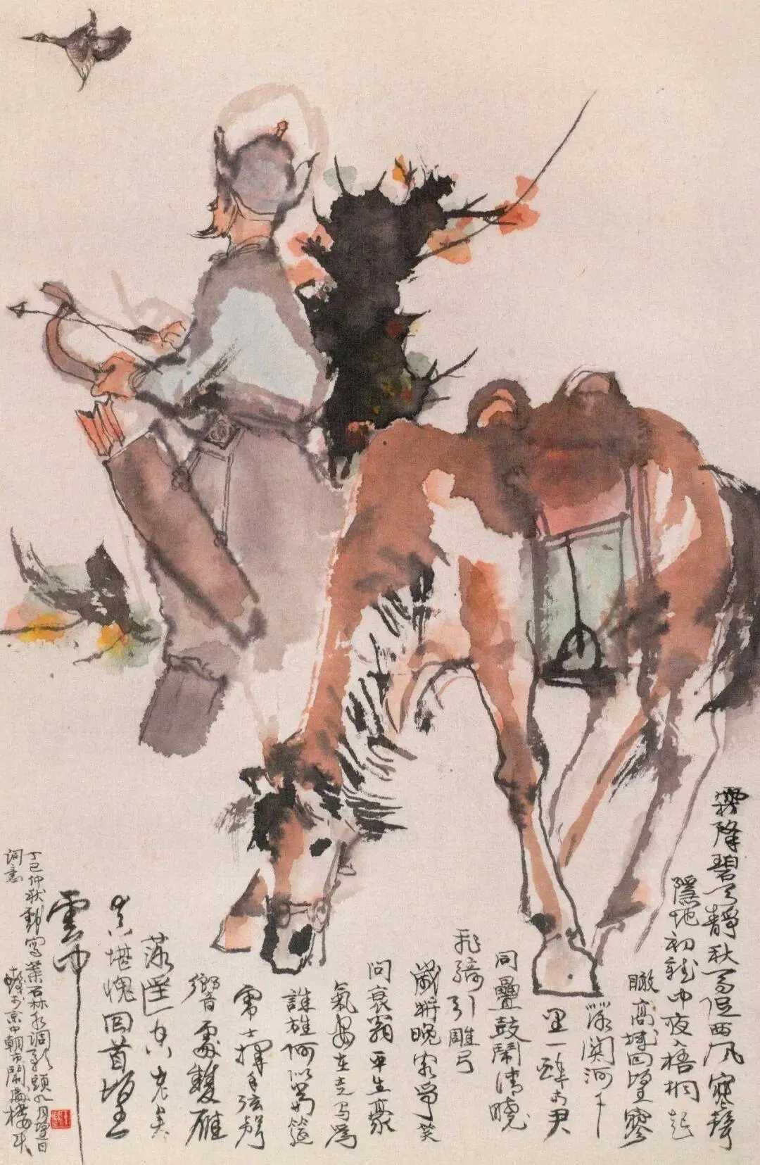 程十发丁巳写宋人词意册。程十发,名潼。是中国海派书画画匠。他最早主攻山水,此后