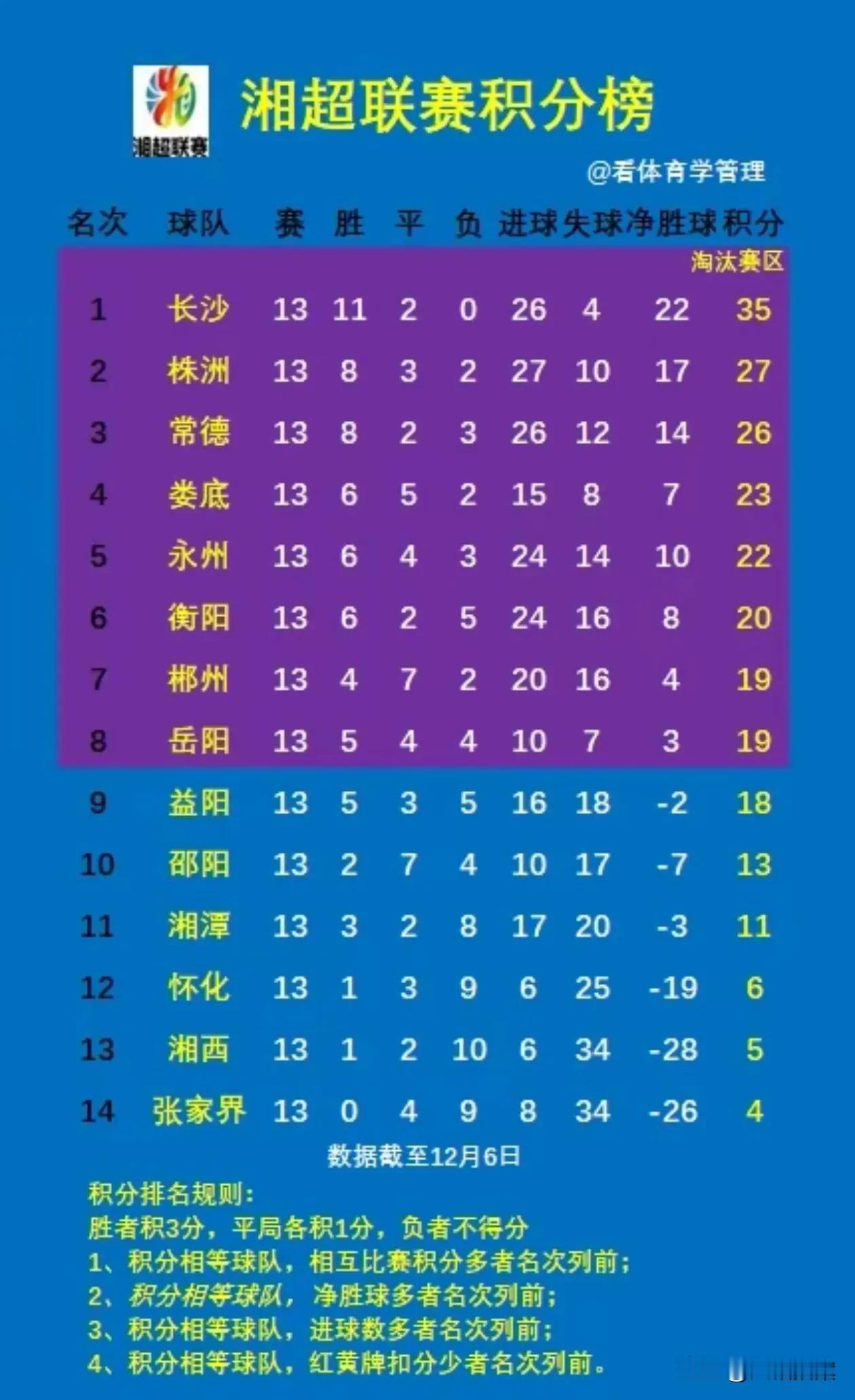 湘超进入淘汰赛后,常规赛的排名其实就没啥太大意义了。除了长沙有绝对优势夺冠,其他球队都可能掀翻对手。 比如郴州VS株洲,谁能担保郴州不会战胜株洲?毕竟这两支队伍之前是战平了的。还有岳阳VS长沙,如果岳阳能抗揍,挺到90分钟常规赛结束,必然在点球大战中战胜长沙。 长沙最怕进入点球大战,因为他们没输过,心态会不稳。长沙会不会成为苏超的南通?我看可能性很大!湘超长沙队 湖南湘超联赛 湘超赛程 湘超长沙队赛程 湘超夺冠概率