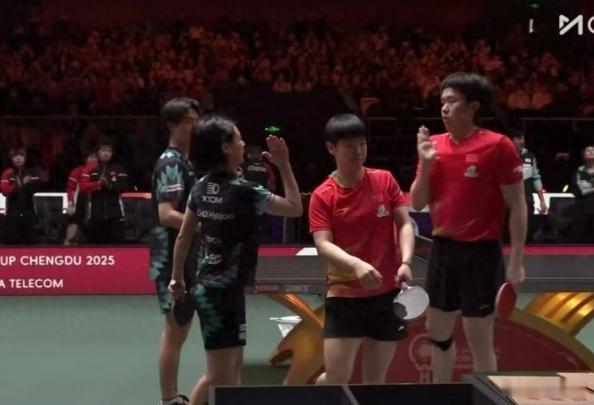 王楚钦紧急撤回一次击掌 2025年12月7日,成都,混团世界杯半决赛赛场,王楚钦和孙颖莎搭档出战混双,3比0击败韩国组合吴晙诚/崔孝珠,三局比分分别是11-9、11-8、12-10。赛后王楚钦一个撤回击掌的动作被传成路人干扰,实际就是他抬手位置没对准,怕碰到孙颖莎的头才赶紧收臂。这小细节能看出运动员的细心,完全没必要跟着瞎传谣言、乱解读 。
