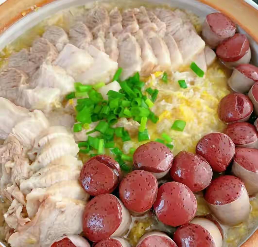东北名菜白猪血肠酸菜粉条一定很好吃,在冬天咕嘟咕嘟冒着热气....