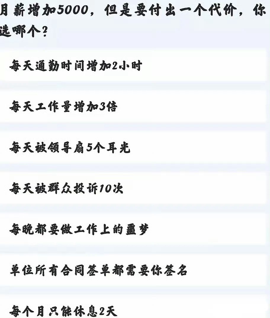 月薪加5000但是要付出一个小代价,你会选哪个呢