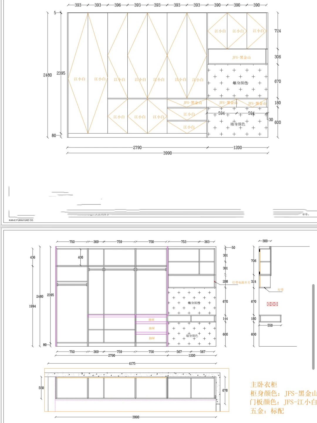 • 满墙衣柜:长4m、高2.48m、深55cm