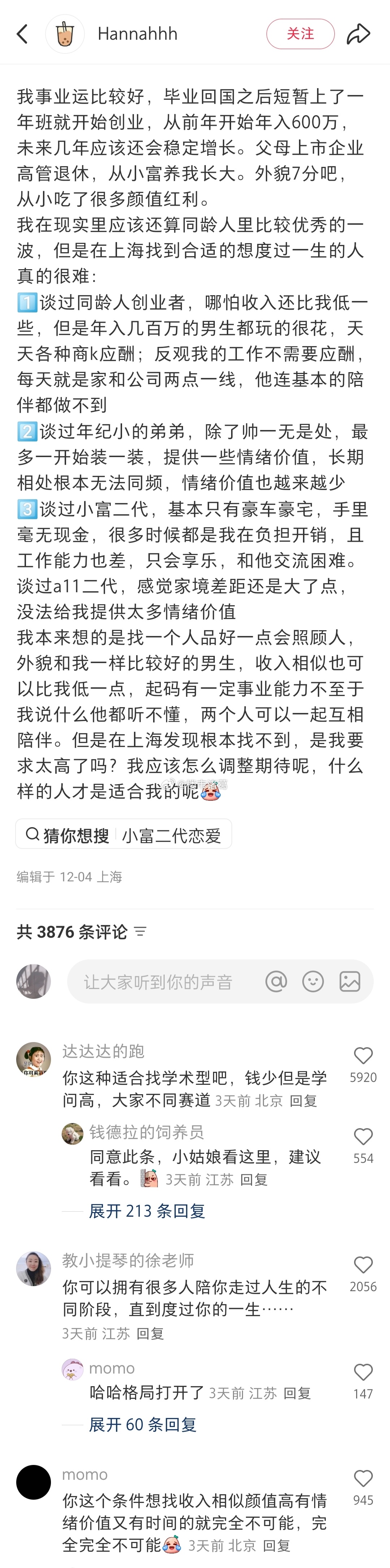 上海年入600万的95后女生应该找什么样的男朋友?