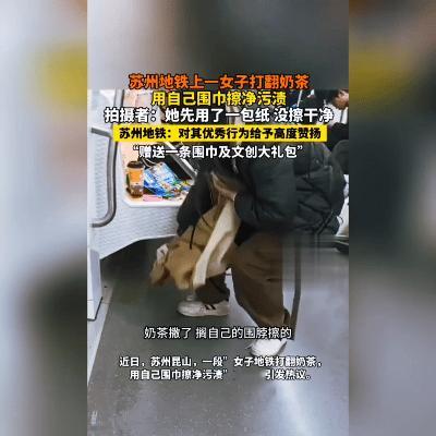 00后女孩用围巾擦地铁!全网泪目寻找“最美弯腰” 12月4日苏州地铁11号线,00后女孩顾某奶茶洒了一地。她先用光整包纸巾,见地面仍黏腻,竟摘下崭新的羊绒围巾跪擦3分钟,连座位缝隙都不放过。监控曝光后,全网泪目:"这才是00后的青春榜样!" 细节戳中全网泪点: 围巾标签都没拆,被奶茶浸透后默默塞进垃圾袋。 全程用身体护住打翻奶茶的乘客,避免其难堪。 离开前向车厢鞠躬致歉,网友:"她弯腰的样子比站直的人更高大"。 苏州地铁紧急寻人:"您守护城市文明,我们守护您的温暖!" 截至7日,这位"围巾女孩"仍未现身,但她的善意已在全网开花。 是什么让一条围巾感动中国?点赞传递这份00后的担当,评论区聊聊你心中的"最美瞬间"!(转发接力,让温暖继续蔓延!)