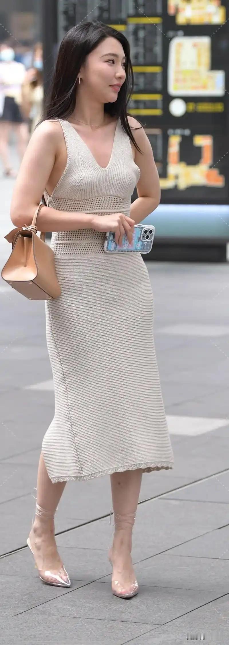 优雅气质穿搭,米色针织连衣裙搭配闪亮高跟鞋,时尚出街!👗👠💃