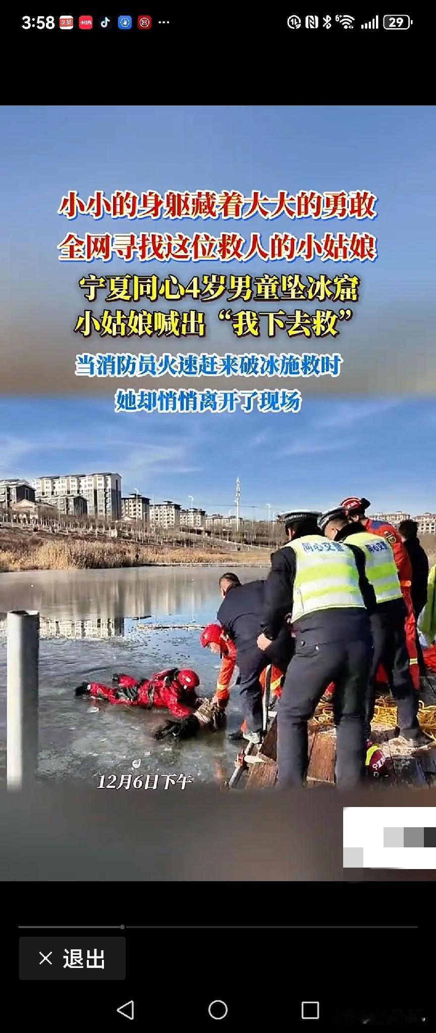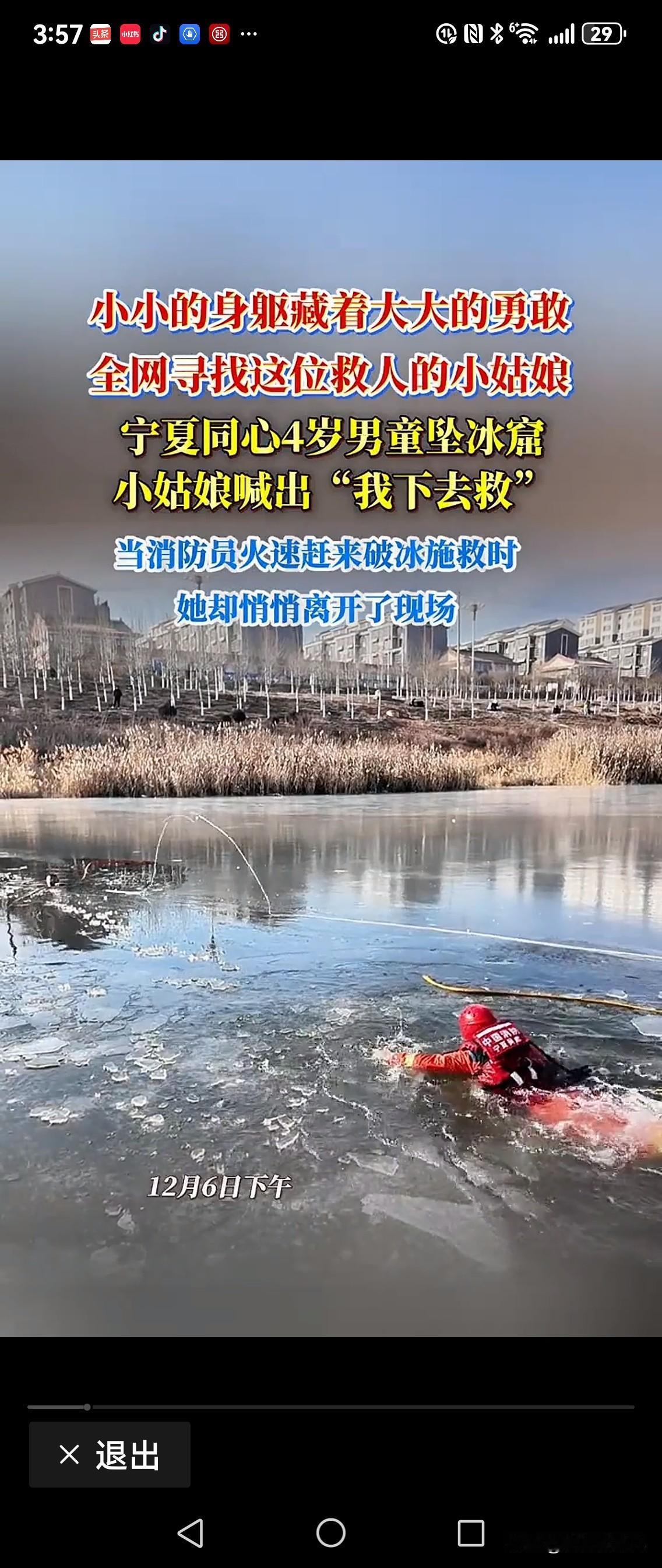 冰窟救援中的青春担当:匿名少女的勇气与成长 12月6日15时许,宁夏吴忠同心县城的人工湖寒风凛冽,零下5度的低温让湖面结起薄冰,却暗藏致命危险。一名4岁男童不慎踩破冰面坠入冰窟,刺骨的湖水瞬间吞没孩童身影,一旁的家长见状失声痛哭,手足无措地向周围呼救。 危急时刻,一道穿着校服的身影迅速冲至湖边。“我能下水救人!”少女清脆而坚定的声音让慌乱的现场有了焦点。附近路人立刻递来一根长管,她趴在脆弱的冰面上,小心翼翼地向冰窟匍匐前进,试图将管子递给被困男童。然而,冰面不堪重负,少女身体一滑,也坠入了冰冷的湖水中。 接到报警后,消防员火速赶到现场。他们优先将体力不支的少女救上岸,裹上保暖毛毯的她,在确认男童暂无生命危险后,悄悄离开了现场,未留下任何个人信息。次日,少女救人的照片在网络上广泛传播,那张趴在冰面、眼神坚毅的身影打动了无数网友,大家纷纷转发寻找这位“校服小英雄”,有网友根据校服特征推测她是当地二中学生。 当晚,少女的父亲李师傅在刷到救援视频时,才发现视频中的救人者竟是自己的女儿。原来,女儿回家时浑身湿透,只谎称是被洒水车淋湿。看着视频中女儿在冰水中挣扎的画面,李师傅既为女儿的勇敢骄傲,又忍不住心疼落泪。据消防队介绍,当时湖面冰层极薄,零下5度的湖水足以让人瞬间失温,少女能坚持到救援到来已属不易。最终,男童被成功打捞上岸,身体并无大碍,而救人少女只是轻微感冒。 这场惊心动魄的救援,让少女的勇敢与善良被人铭记。面对赞誉,李师傅朴实的话语引人深思:“勇敢值得肯定,但下次救人,一定要先保证自己的安全,光有勇气不够。” 这位匿名少女用行动诠释了青春的担当,而父亲的叮嘱也为这份勇气增添了理性的注脚——善良需要勇气护航,勇敢更需智慧相伴,这或许是这场冰窟救援留给我们最珍贵的启示。