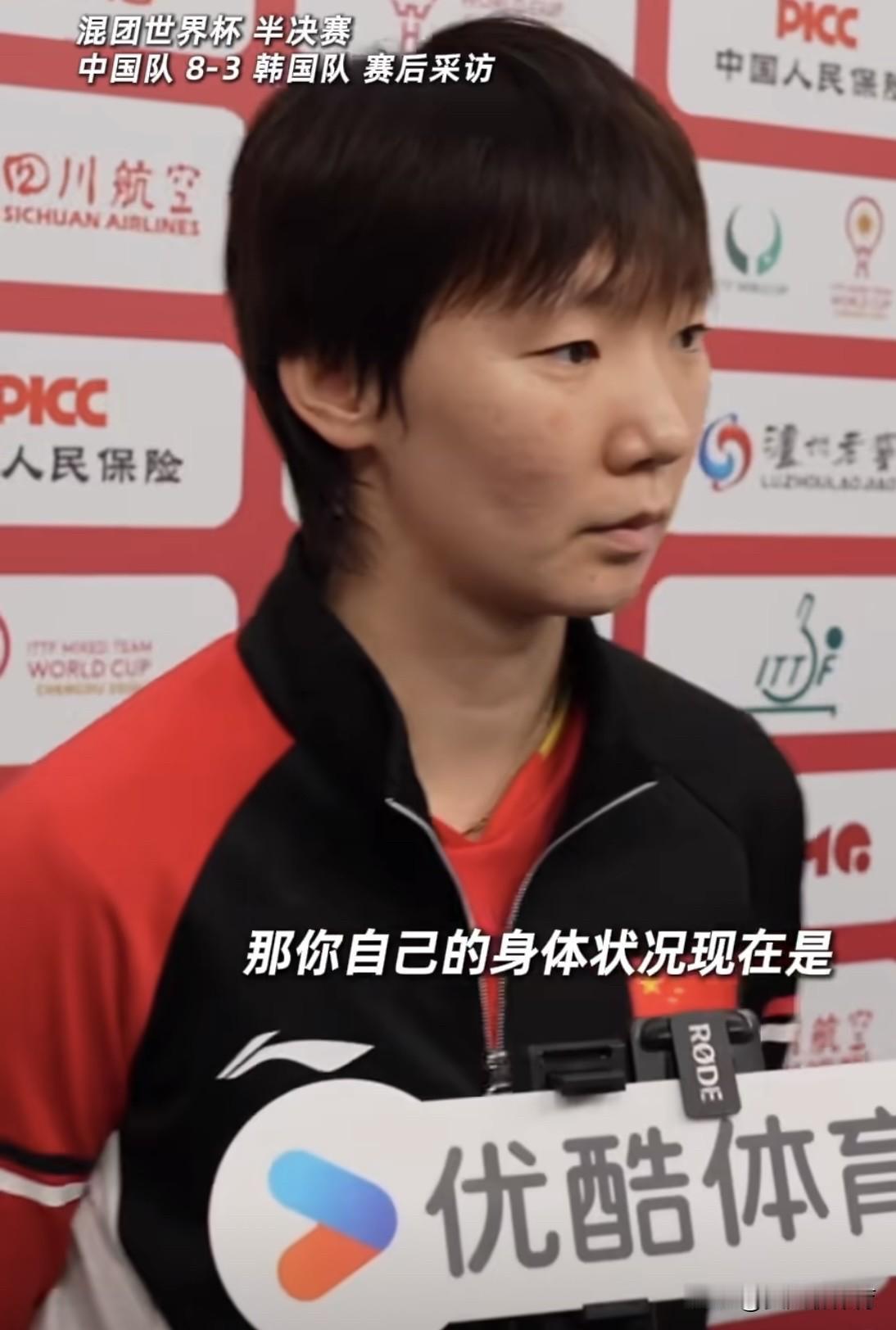 王曼昱说自己的身体状况,就是在咬牙坚持在顶[流泪][流泪]今天打完团体赛半决赛后,曼昱接受了记者的采访,透露自己的身体出现了点问题!这问题可不是小问题,昨天打日本那场对阵伊藤美诚,看到曼昱捂着右肩膀,表情非常疼[流泪]在身体状况不佳的情况下,王曼昱仍然顶住了日本、韩国、法国三场最难打的女单比赛啊[流泪][流泪]半决赛这场女双又是起到定胜负的关键作用!一年半没有主管教练的曼昱,女单女双都要承担重任,带伤坚持也要为国而战[流泪][流泪]教练组什么时候能给她配个主管教练啊!