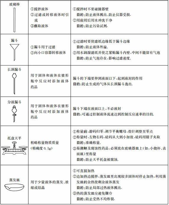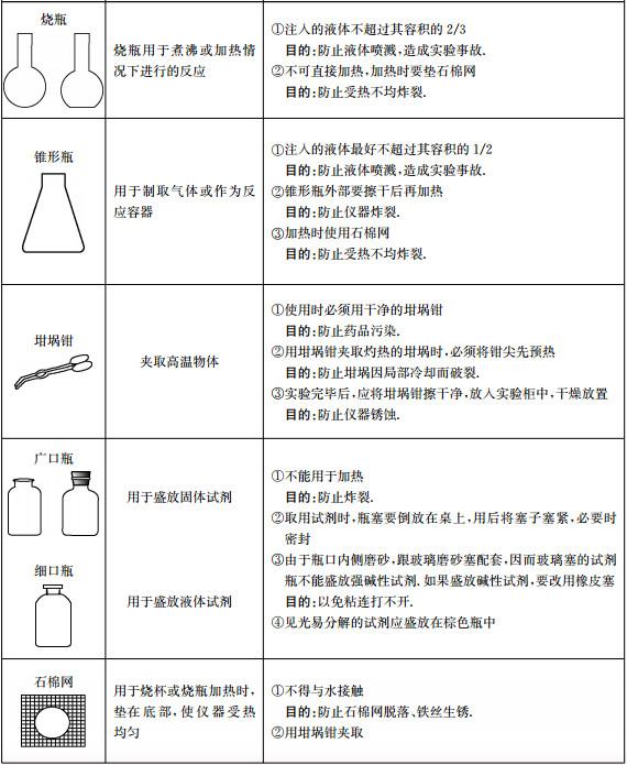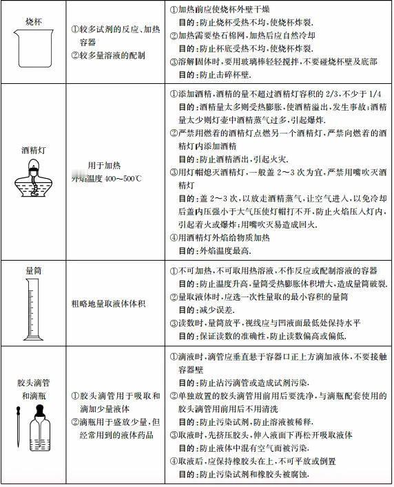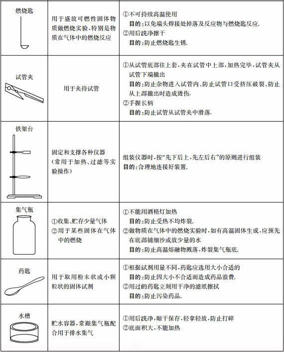 初中化学实验常见仪器的用途、使用注意事项归纳初中化学中考化学 化学实验
