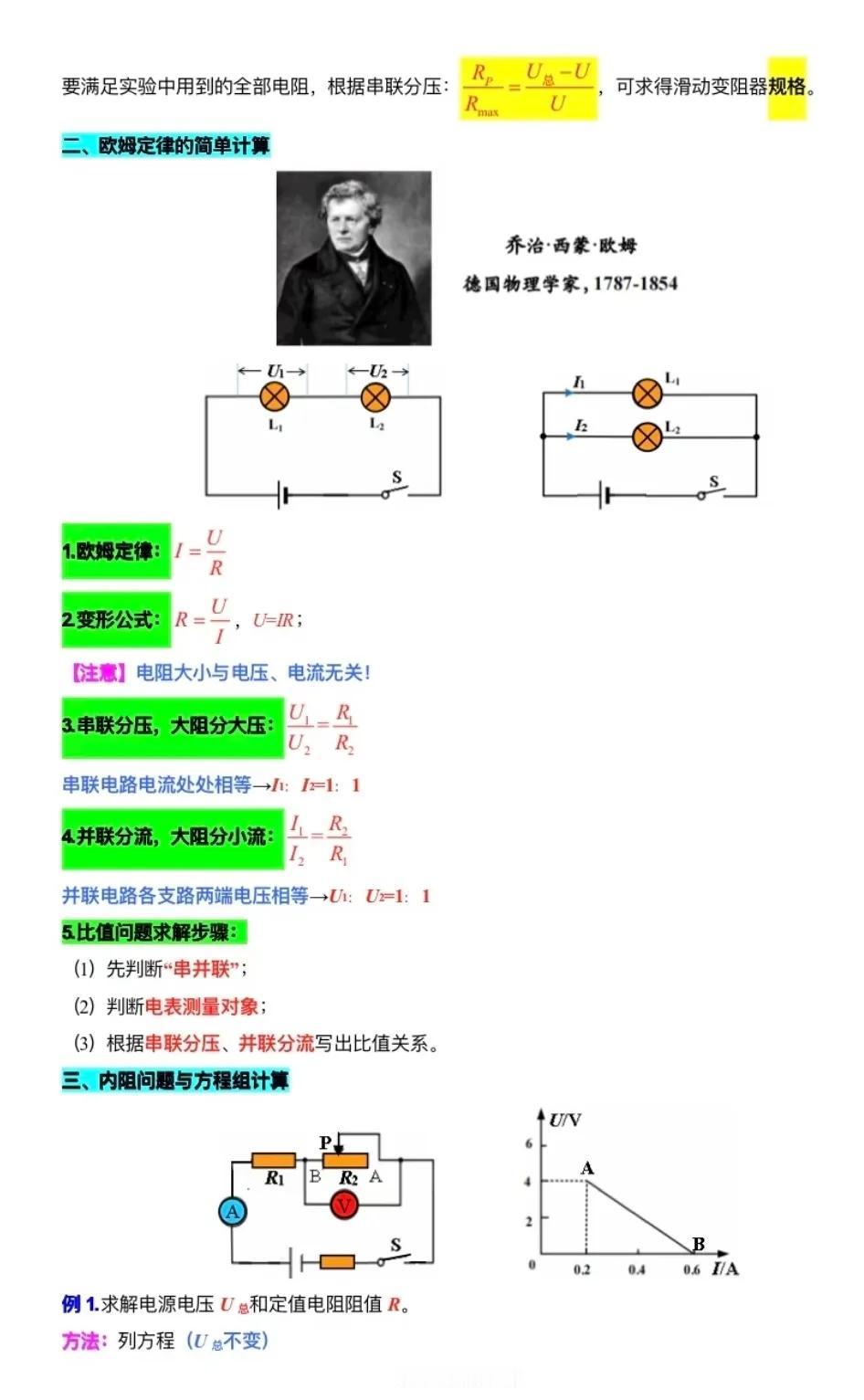初中物理《欧姆定律》九大重点个个击破初中物理 中考物理 欧姆定律