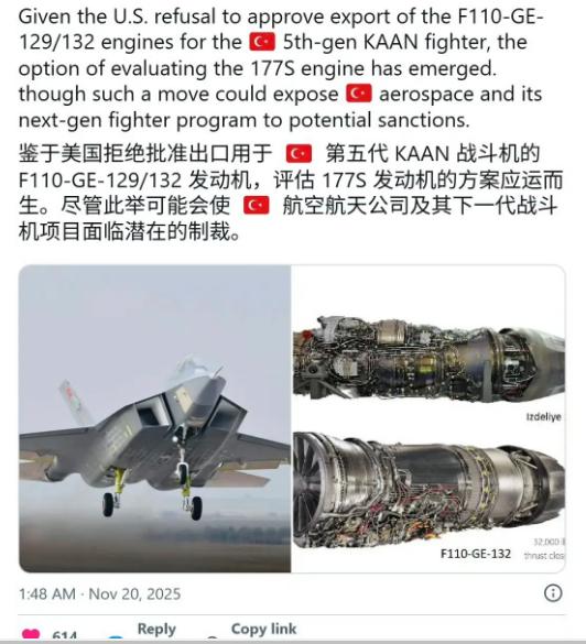 东大的成功让很多宵小之辈产生了不切实际的幻想,以为五代机就跟种萝卜一样容易。尤其是土耳其,这些年和美国闹的很不愉快,还把航发希望寄托在美国身上。被美国拍一巴掌,脸都抽肿了。现在想求助俄罗斯,估计俄罗斯也不会给。土耳其的“可汗”战机与俄罗斯的苏-57和苏-75是竞争关系,俄罗斯怎么可能去扶持自己的竞争对手。 土耳其人看着东大的歼-35一架架从生产线下来,心里大概也犯嘀咕——同样是五代机,咋人家就能玩得转,咱就卡在发动机上呢? 这事得从根儿上说起。 早年间土耳其跟着美国混,给F-35项目打工人,攒了点组装经验,觉得五代机也就那么回事儿,不就是隐身涂层加雷达吗?谁知道真自己干起来,才发现发动机是道过不去的坎儿。 最初“可汗”用的美国F110发动机,说白了就是F-16的老心脏。结果土耳其买了俄罗斯的S-400,美国人当场掀桌子:你小子吃我的饭还砸我的锅?直接断供发动机。这 时候土耳其扭头找俄罗斯,想着老毛子的发动机总能救急吧? 可俄罗斯的算盘珠子都崩到脸上了——苏-75“绝杀”正盯着中东市场呢,印尼、阿联酋这些客户,买“可汗”就不买苏-75,俄罗斯怎么可能把压箱底的AL-41发动机卖给竞争对手? 再说了,俄乌战争把俄罗斯的产能啃得精光,连印度的苏-30零件都供不上,哪有余力管土耳其? 有人说,土耳其不是和俄罗斯关系不错吗?去年还一起搞天然气枢纽呢。 可军贸这事儿,亲兄弟也要明算账。俄罗斯卖武器有个毛病,要么给猴版,要么附加政治条件。 当年印度跟俄罗斯合研五代机,结果被坑了几十亿,最后只能买法国“阵风”。 土耳其要是真用了俄制发动机,美国那边的制裁立马跟上,说不定连现有的F-16机队都保不住。 别忘了,土耳其空军现在一半家当都是F-16,美国人真要卡死零件,这些飞机全得趴窝。 再说回技术层面。“可汗”的块头比歼-20还大,双发设计需要大推力发动机,俄罗斯的AL-31系列推力不够,AL-41又舍不得给。 就算咬咬牙买了,俄制发动机的寿命只有西方同类的三分之一,维护成本高得吓人。土耳其试过组装F-16,知道西方后勤体系多麻烦,真换成俄制发动机,地勤得天天骂娘。 更要命的是,俄罗斯的航电系统和土耳其现有的北约体系根本不兼容,买了俄制发动机,等于把整个空战体系推倒重来,土耳其哪敢赌这么大? 这时候有人想起中国的涡扇-10G,性能接近F110,价格还便宜。 可土耳其是北约国家,前脚刚因为S-400被美国收拾,后脚再用中国发动机,等于在北约胸口插刀子。埃尔多安再硬气,也不敢同时得罪欧美两大主子。 再说了,中国发动机好是好,但“可汗”的气动设计抄的是F-22和苏-57的混合体,隐身外形漏洞百出,就算换了好发动机,雷达反射面积还是大得像民航客机,根本达不到五代机标准。 对比东大就清楚了。歼-35从立项到量产,用的都是自主研发的涡扇-15,整个产业链攥在自己手里。土耳其呢?雷达靠英国,发动机靠进口,隐身涂层找意大利公司,连起落架都是外购的。 这种“万国牌”战机,看着唬人,实则是纸糊的老虎。去年首飞13分钟就落地,到现在第二架原型机还没影子,印尼签的48架订单,大概率要拖到2030年以后——那时候东大的六代机都该满天飞了。 最讽刺的是,土耳其以为傍上俄罗斯能绕过美国,却忘了俄罗斯自己的苏-75也在抢“可汗”的客户。 去年迪拜航展,俄罗斯把苏-75的价格压到3000万美元,比“可汗”便宜一半,摆明了要在中低端市场绞杀竞争对手。 土耳其夹在美俄中间,两头受气,说到底还是缺了东大最核心的东西——完整的工业体系。五代机不是搭积木,发动机、雷达、飞控、材料,少一样都玩不转。 土耳其连个合格的涡扇发动机都造不出来,却幻想像东大一样弯道超车,这只能说是痴人说梦。