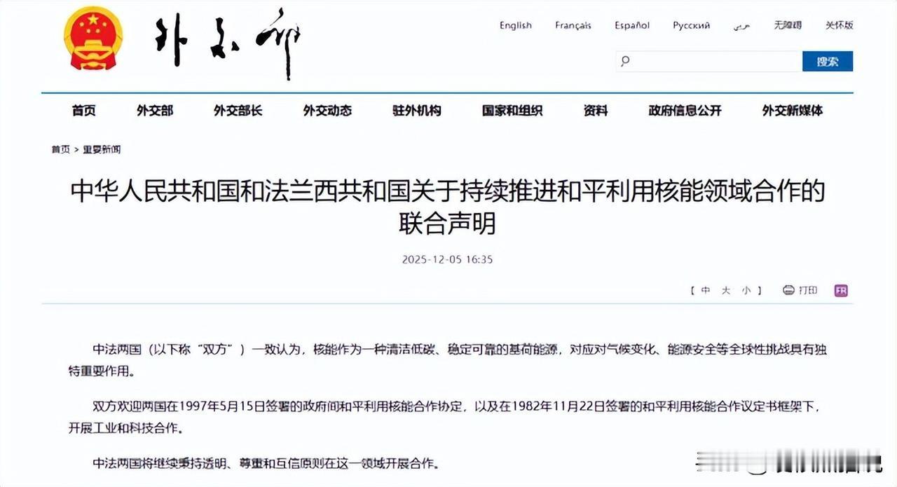 中国核电这么强?为啥还要和法国合作?这次中法核能合作可不一般! 根据外交部联合声明显示,中法核能是全面战略合作伙伴,覆盖了研发、工程建设、人才甚至是国际标准制定等等。可以说,在历史上,西方国家和中国这样合作的案例都是比较少的。 很多人可能对这个没啥概念。 你要知道,法国是顶着压力和中国合作的,那么法国一定是能在合作中取得好处的。 那么问题来了,中国核电技术明明已经实现独立自主,为啥还要和法国合作呢? 因为四十年前咱们建大亚湾核电站时,连反应堆怎么焊都得跟着法国师傅学,人家手把手教了成千上万的人次,那真是一砖一瓦打下的基础。 现在咱虽说有了华龙一号、玲龙一号这些“当家花旦”,但核电这事儿,就像盖楼——地基是法国老技术打的,现在要盖更高的楼,还得借梯子。 举个实在的例子,法国在核燃料循环上的“闭式路线”玩了半个世纪。 啥叫闭式?就是用过的核燃料不扔,提纯后接着用,咱甘肃的钍基熔盐堆实验,就缺这种精细化处理的经验。 去年中法联合实验室在快堆材料上的突破,让中国快堆的“燃料寿命”延长了 30%,这可不是靠蛮力能赶上的。 再说国际标准这张牌。现在全球核电招标,一半要看法国的 AFCEN 标准。咱华龙一号要出口,光自己说安全没用,得让欧洲人点头。中法合编的《三代核电抗震规范》,去年刚被国际原子能机构采纳,这相当于给中国核电发了张“全球通行证”。 还有个现实账:法国有 56 座核电站的运维经验,咱现在 112 台机组在建,很多设备老化问题再过十年就会集中爆发。 去年台山核电站的 EPR 机组检修,法国工程师带来的“无损检测”技术,让检修时间缩短了 40%。这些“慢性病”的药方,不是靠新建机组能解决的。 最关键的是未来布局。核聚变这事儿,法国的 ITER 项目搞了 20 年,咱的“东方超环”虽然跑赢了时间,但磁约束的材料工艺,中法联合实验室的突破能让商业化提前 5 年。 法国在快堆、小型堆的“冷门技术”储备,恰恰是中国“热堆—快堆—聚变堆”三步走里的短板。 有人说咱都世界第一了,还合作啥?这就像开车,咱现在能造好轿车,但赛车的变速箱、飞机的发动机,还得和高手切磋。 去年中法在非洲铀矿的联合开发,咱拿资源,法国出技术,一里一外省下的成本够建两座核电站。更别说在英国欣克利角项目上,中法联合投标,硬生生把日本竞争者的报价压下去 15%——这不是技术不行,是市场需要抱团。 说到底,核电是“百年工程”,咱现在的自主是解决了“有没有”,但要解决“好不好、久不久”,就得借法国的“老经验”和“新脑洞”。 这合作不是谁离不开谁,是两个高手组队打擂台,赢的是中国核电的未来。