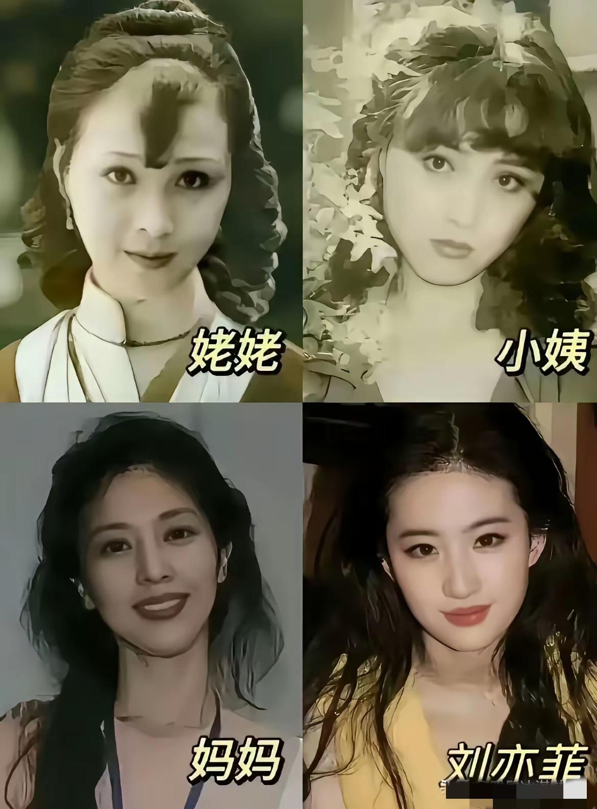 刘亦菲妈妈比刘亦菲更好看。 刘妈五官脸型更精致,骨架纤长,整个人轻盈,气质优雅。 刘亦菲跟她妈妈比更钝,更圆。骨架大,溜肩,胖起来虎背熊腰…… 但刘亦菲的辨识度比她妈妈高,所以,刘妈就算做明星,也不可能比刘亦菲红🤷♂️…… 刘亦菲姥姥、小姨都很美,而且气质各有不同,她小姨好像也做过艺人,但她们还是存在辨识度不够高的问题。所以,他们一家子美人,刘亦菲最红……