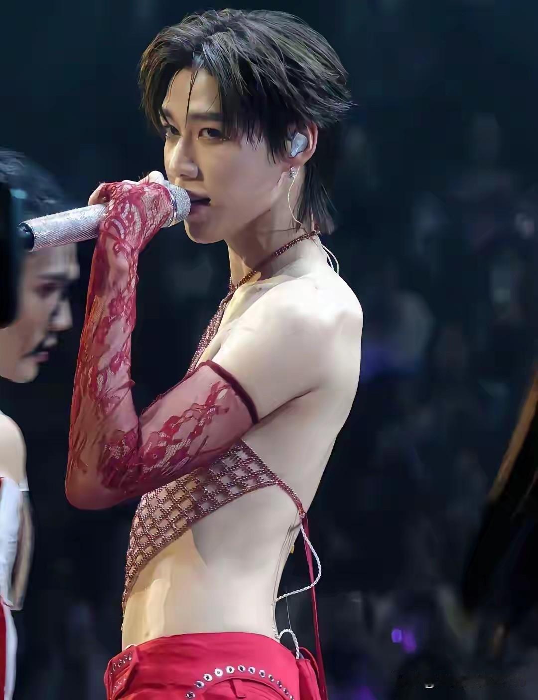 一个男子汉穿得比女人还妩媚多姿,网状肚兜,蕾丝袖套,如果不看脸,百分百以为是个美女。真没想到这么个男明星居然穿得比女人还女人,让我惊掉下巴了。