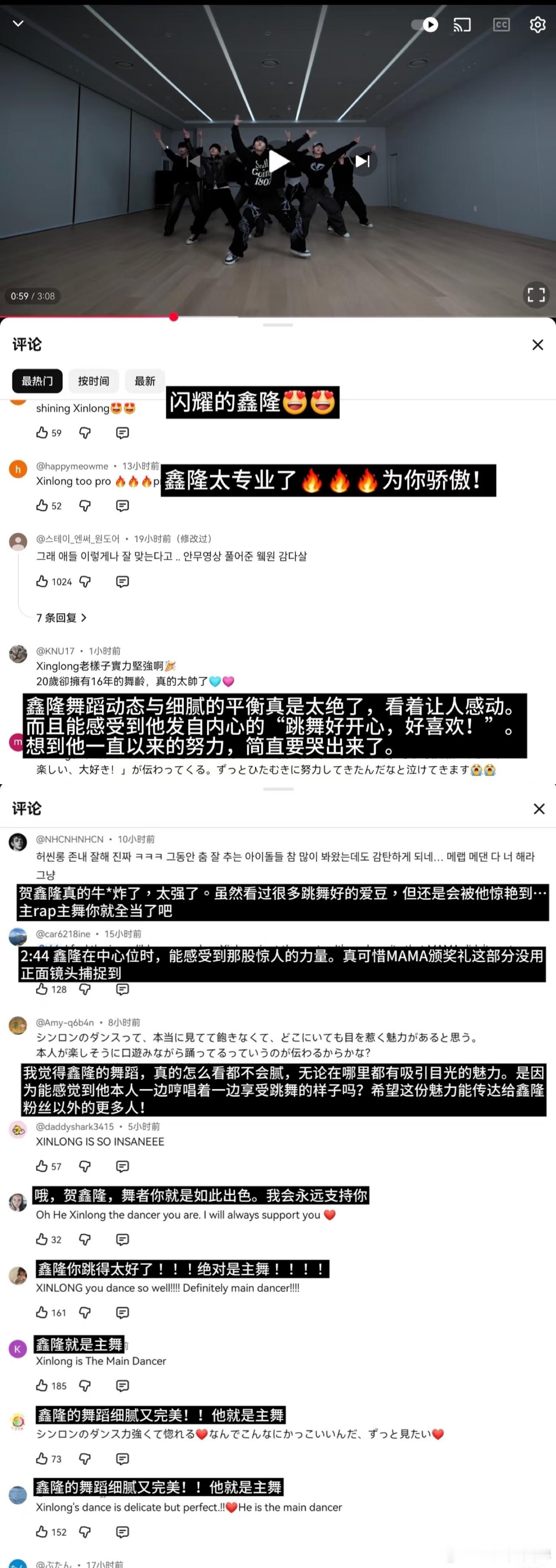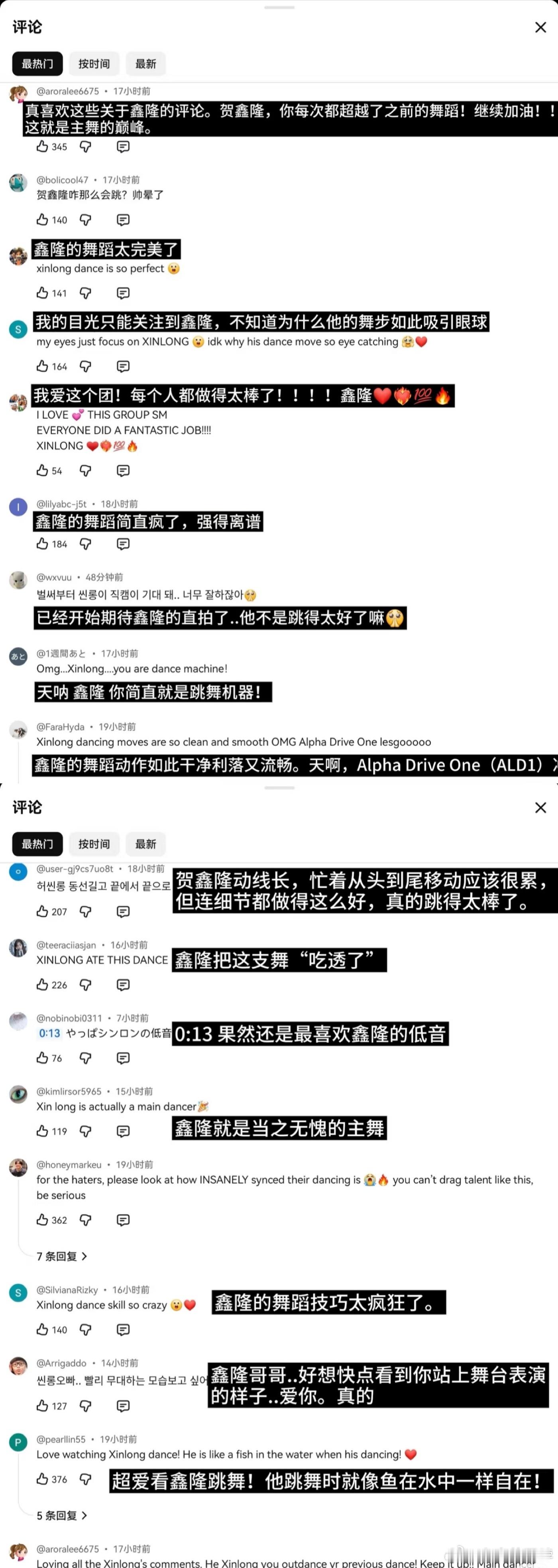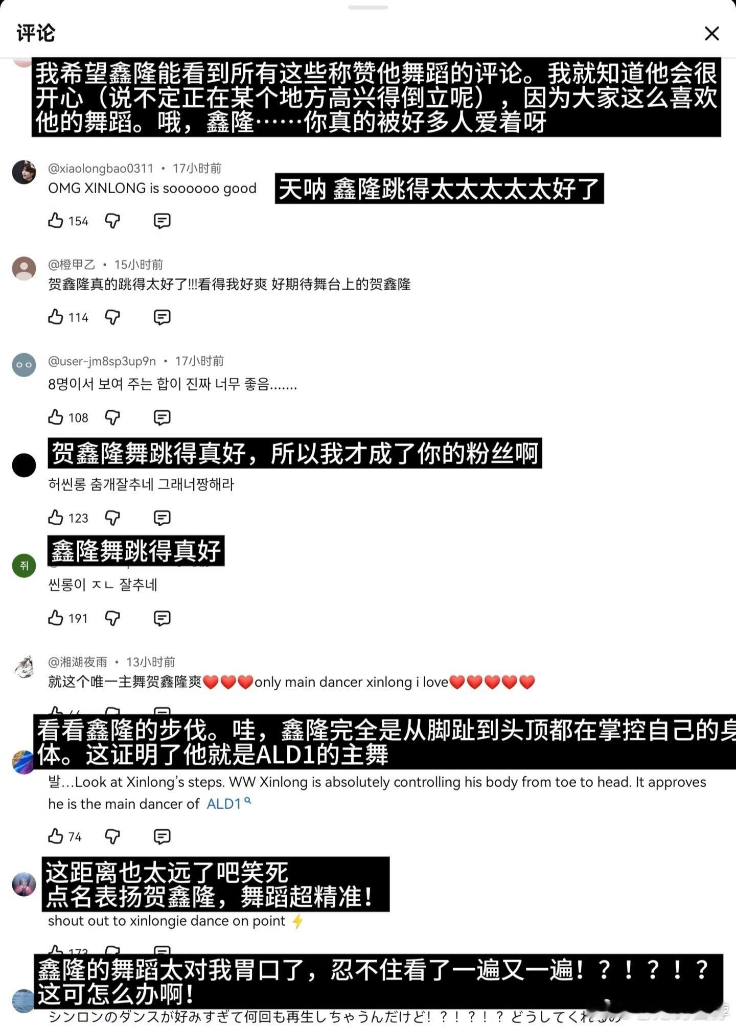 贺鑫隆又被夸了✨ALD1先行曲《Formula》练习室的油管热评几乎全是贺鑫隆,已刷屏!超绝的舞蹈实力和舞台魅力吸引了很多路人来夸赞,做的好!
