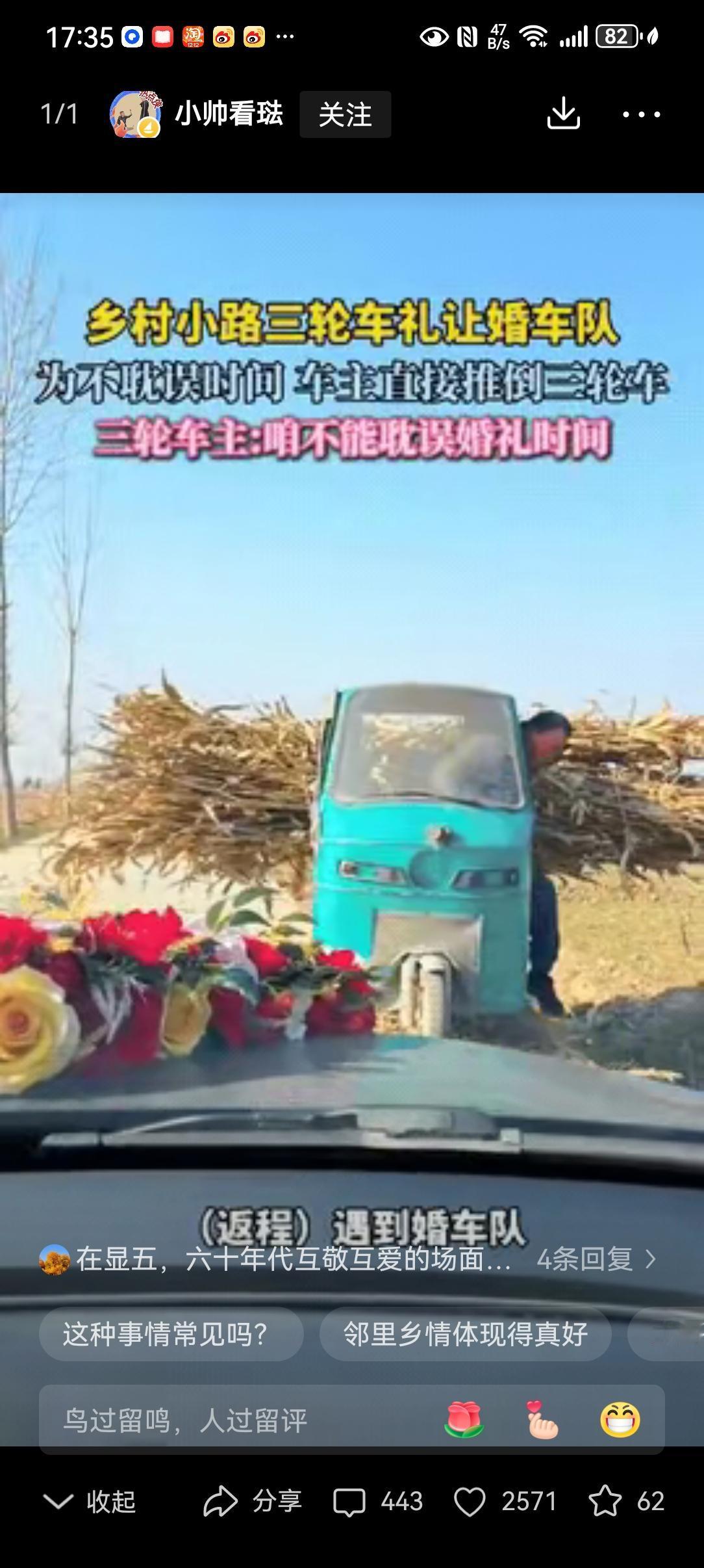 格局打开了!山东一大哥去自家地里拉玉米秸秆,返回途中,恰巧遇到了婚车队。大哥为了