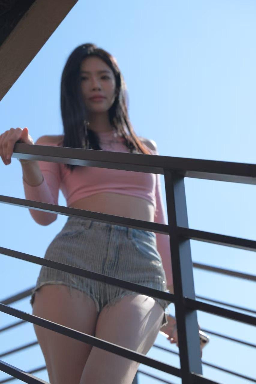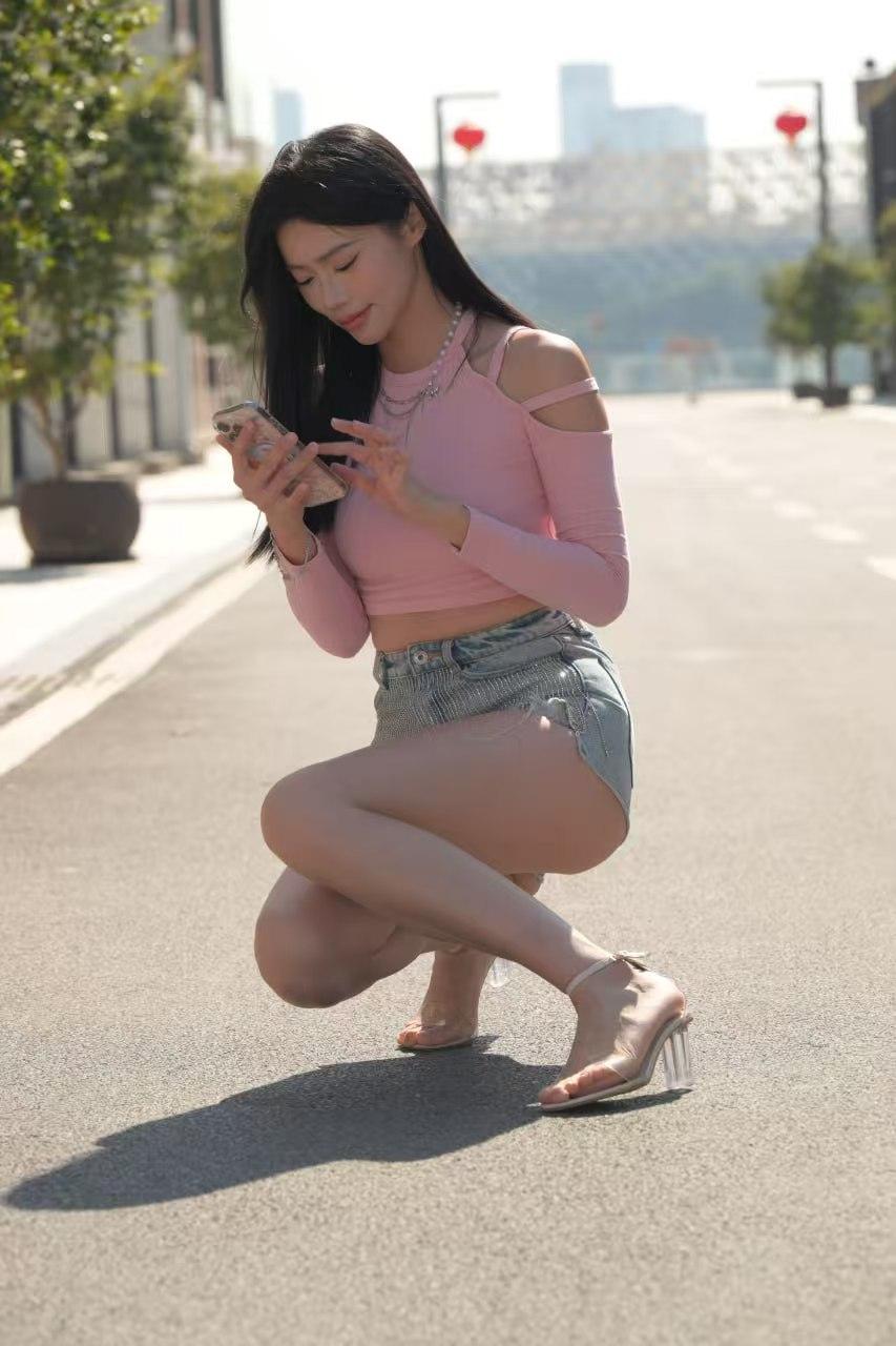 柔粉修身包臀短裙,弹力面料妥帖裹出腰臀弧度,柔粉调揉合温柔与轻熟性感,是近年轻熟风的标志性单品。模特落座露台,裙摆随坐姿轻贴腿部,衬出线条纤细;透明高跟鞋隐去鞋身,让比例更舒展。抬手触手机的姿态松弛又自然,背景的休闲桌椅弱化了性感的锐利,让轻熟风的精致落进日常场景里,每一处线条都裹着恰到好处的时尚张力。模特街拍模特摄影技巧模特摄影模特街拍 模特摄影大长腿美女模特 纯欲模特