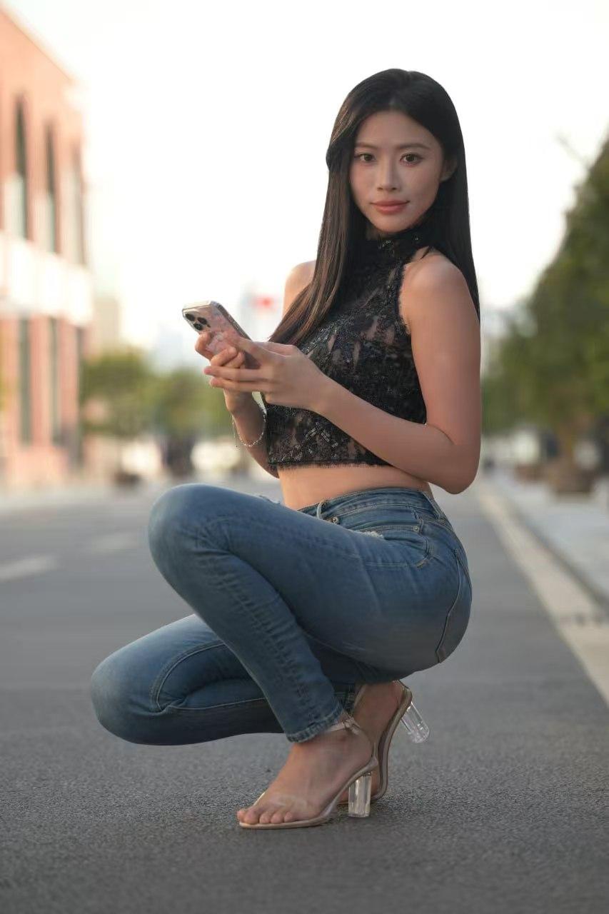 复古高腰紧身牛仔裤,以弹力面料勾勒腰臀线条,包臀弧度自然收拢赘肉,提臀效果让身形更显立体纤瘦。模特街拍中,常搭配短款露腰上衣,露出腰线强化比例,脚踩透明高跟凉鞋,松弛中透着利落性感。镜头聚焦楼梯间光影,牛仔蓝的复古质感与现代建筑碰撞,随性摆姿里,将日常穿搭的时尚张力精准呈现。模特街拍模特的神仙身材 时尚模特模特#美女 纯欲车展模特摄影」 模特。