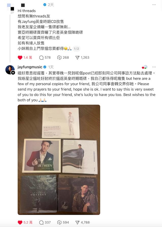 近日,一名香港女孩为宏福苑火灾受灾好友寻找歌手冯允谦旧碟的求助信息引发全网关注,冯允谦的暖心回应更让这场爱心接力充满温情。 据悉,女孩的好友是宏福苑火灾的受害者。作为冯允谦的忠实歌迷,该受灾女子多年收藏的冯允谦系列CD在火灾中悉数焚毁。为抚慰好友创伤,女孩决定为其集齐偶像所有CD,却在寻找冯允谦英皇时期发行的一张旧碟时屡屡碰壁,无奈之下只得通过网络发布求助信息。 这则充满友爱的求助信息很快被冯允谦本人关注到。他随即留言回应,称看到信息后第一时间与公司联络调取该张旧碟,怎奈发行时间久远,公司库存中也已无存。为圆受灾粉丝心愿,冯允谦表示将把自己私人收藏的最后一张同款CD赠予对方。 除赠送珍藏外,冯允谦还在留言中真诚祝福受灾粉丝“一切安好”,并特别称赞求助女孩:“有这样的好朋友真的很幸运”。这份来自偶像的关怀与对真挚友情的肯定,让众多网友深受触动,纷纷留言“双向温暖太好哭”“灾难无情但人间有爱”。